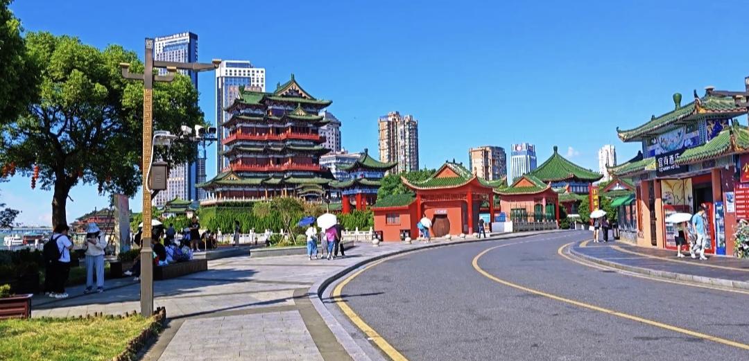 这就是江南三大名楼之一,江西南昌滕王阁。去的时候天气刚刚好,建筑和天空色彩具有强烈的视觉冲击力。因唐朝诗人王勃的一首《滕王阁序》,让滕王阁名满天下,秋水共长天一色,落霞与孤鹜齐飞,站在滕王阁上,俯瞰南昌赣江两岸的风光,依稀可以重现当年的风光,只是要把高楼想象成旷野田园。