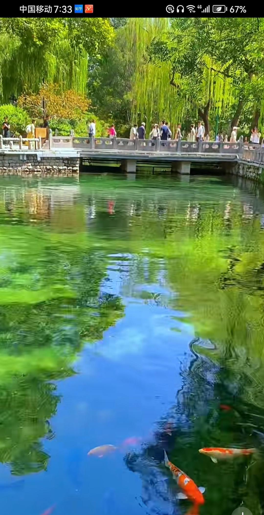 #美诗词秋景分享# 《七律·泉城秋韵》/马进鹏 柳影摇波水鉴开,锦鳞逐浪戏晴埃。 长桥人语穿林过,满袖清风带翠来。 石岸苔痕凝露静,云根花气入怀谐。 此中真意谁能会,只许游鱼共浅斋。 诗里描绘柳影在水波中摇曳,池水如镜展开,锦鲤追逐浪花生姿。长桥上的人声穿过树林,清风满袖携着翠色而来。石岸苔痕凝着露珠静静伫立,花气从山石处飘来,与心怀相谐。这其中的真意谁能领会?只愿与游鱼一同沉醉在这浅淡雅致的景致里,尽显对池畔柳色、游鱼、人声与清风交织之景的喜爱,传达出沉醉自然、享受闲趣的悠然心境。