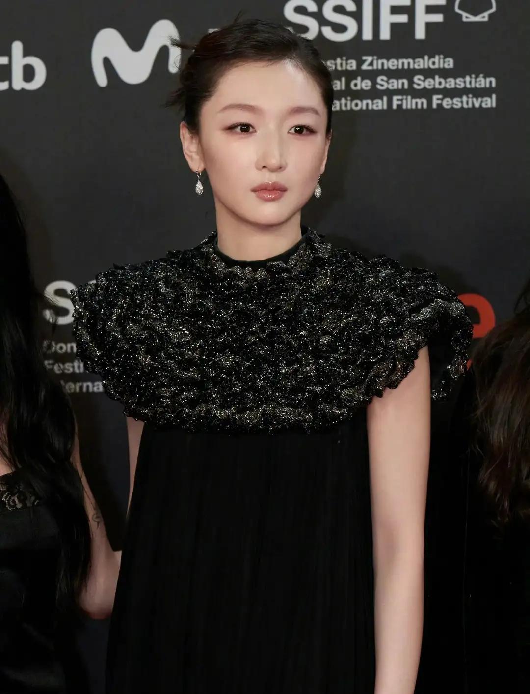 周冬雨终于显现出成熟之态了。 这是一个在西班牙举行的2025圣塞巴斯蒂安国际电影节! 周冬雨作为本届电影节评委亮相电影节开幕式,瞬间就成了一个最大的亮点。 她不是靠奇装异服吸引眼球的,也不是凭浓妆艳抹赚取大众好感。这次的装束,一袭黑色拖地长裙,立刻就让她高贵、典雅起来。 以前她总是靠小女生的打扮吸引众人,给人小巧玲珑、古灵精怪的印象。 这次真的让人刮目相看了。把肉肉遮起来,气场马上就出来了。珠宝耳环,名牌腕表,加上设计独特的服装,干净利索的发型,好冷的表情,每一处无不彰显出周冬雨成熟、睿智和无与伦比的美! 原来穿搭对了,小女生也可以有强大的气场和绝美的气质! 看看那些和她合影的同仁,哪个也不及周冬雨装束得体,傲视一切的态度,太出色了。 周冬雨已经在国际舞台站稳脚跟!太厉害了,了不起啊!