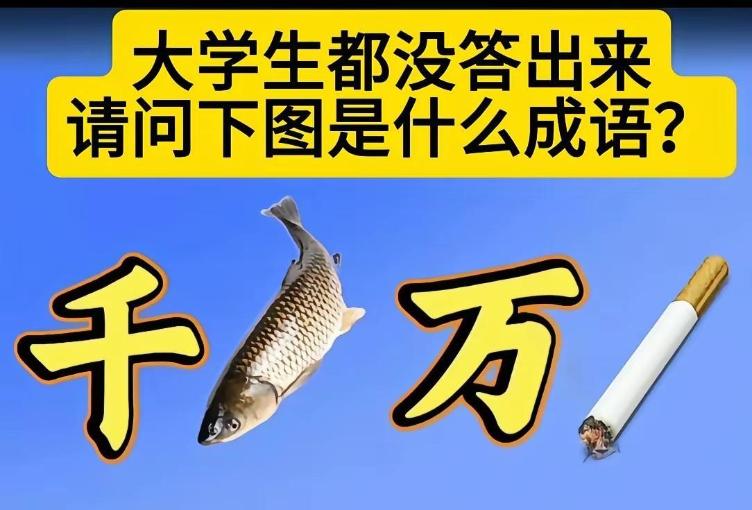 千辛(腥)万苦(尼古丁),应该是最好的答案了!如果鱼和烟互换就是千言万语了,什么大学生都答不出来?小儿科,幼儿园的都懂!