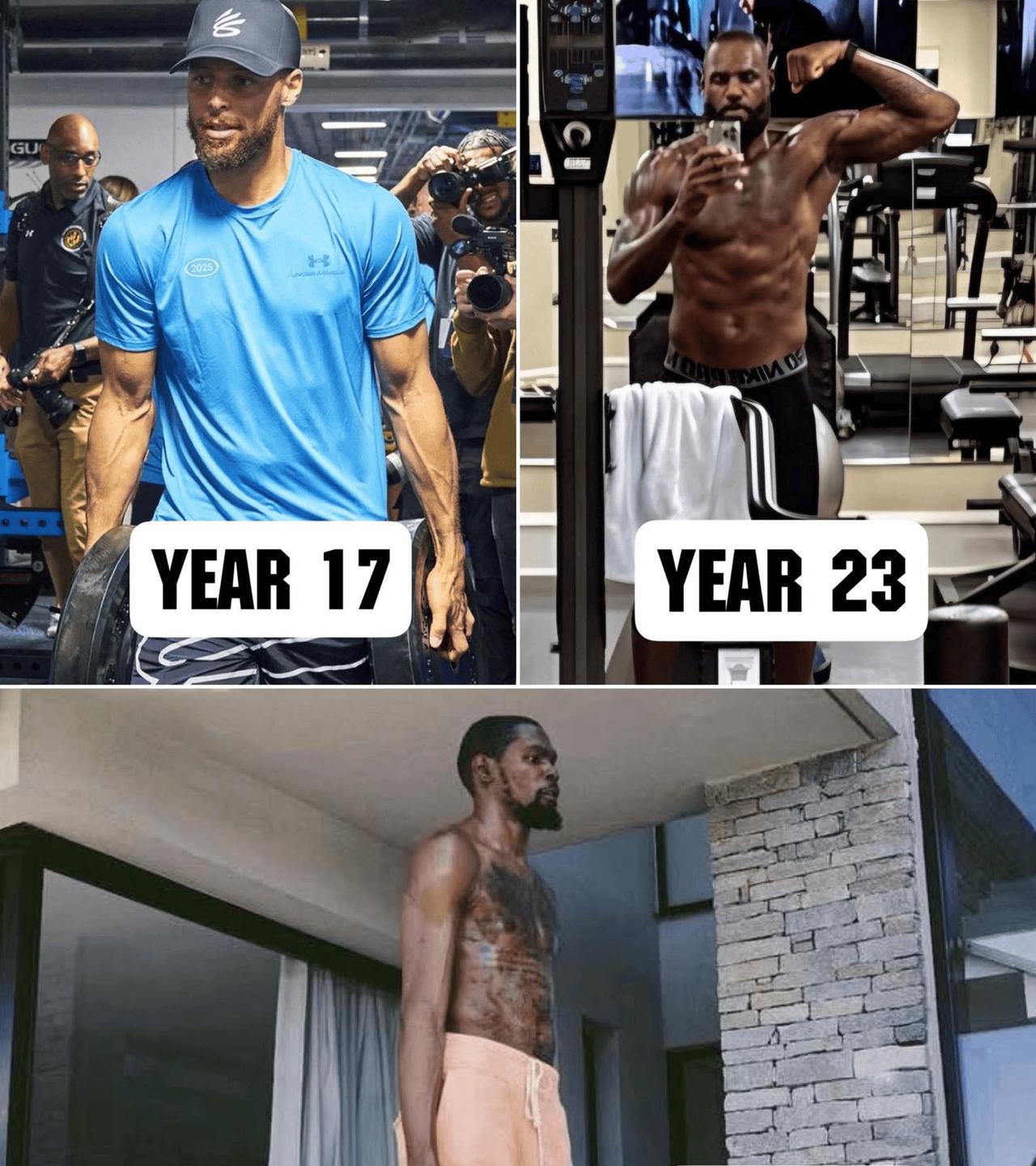 细狗杜兰特! 和詹姆斯,库里比起来,杜兰特更像是新秀年! 对比三人的照片,说实话,杜兰特这肌肉也太线条了! 根本看不出来有任何脂肪的样子! 而且应该是个子太高的原因,看起来好细狗的样子! 不过,这样的体型看起来还真的挺年轻的! 这样的体型也足以让杜兰特对下肢的压力没那么大,