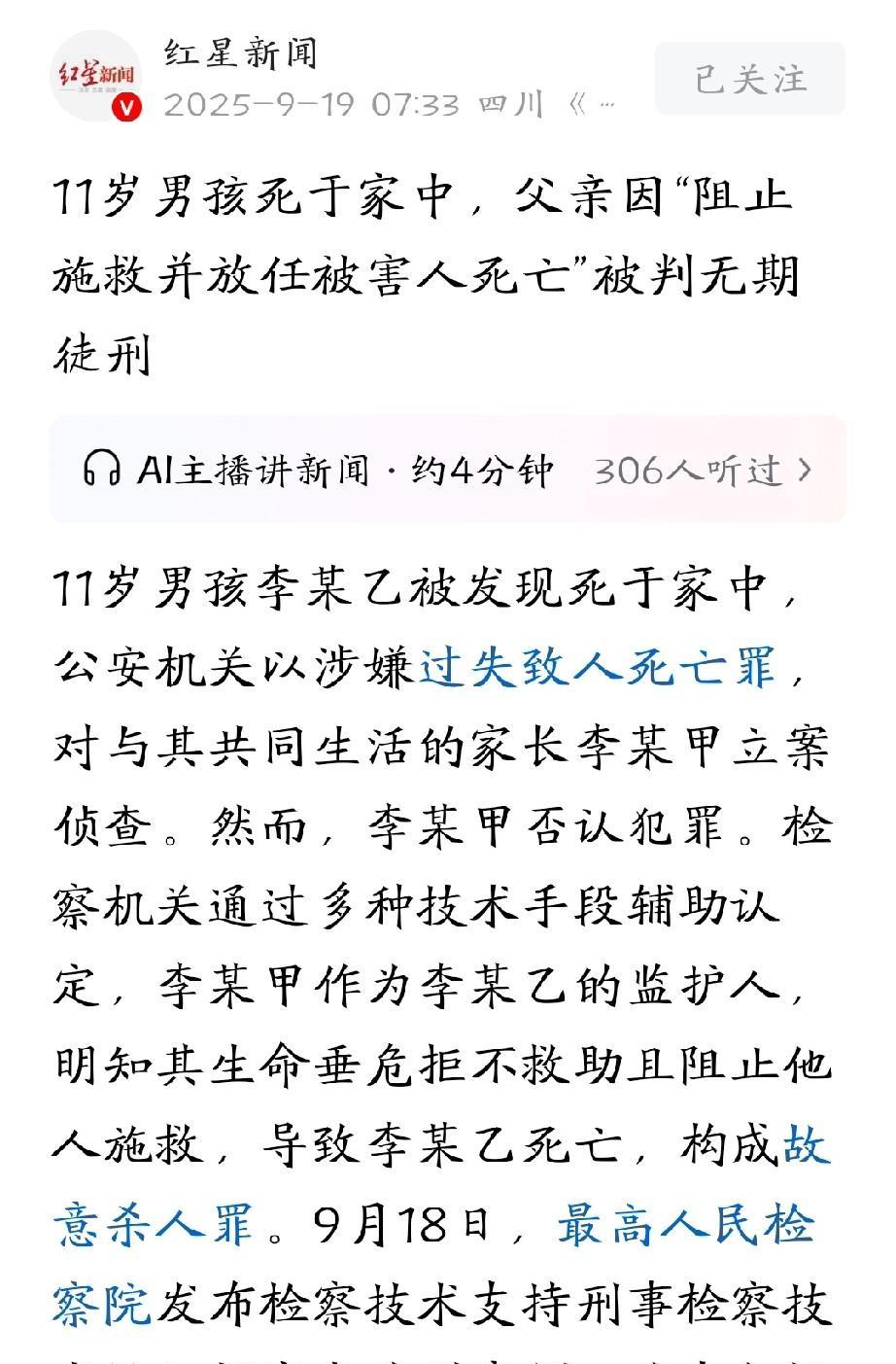 太残忍了!山东,男子和妻子离婚后,将不到4岁的儿子丢给爷爷抚养,孩子8岁时,他将儿子接走和他住。居住过程中,他怀疑儿子并非自己亲生,不让孩子上学,更不让出门,还不允许爷爷探望。整整摧残了孩子3年,孩子11岁时,他两个月不给孩子饭吃,还经常殴打,父亲放心不下要看孙子,他竟威胁说要一拳把孩子打死。在他的无情摧残下,孩子死于家中,没想到他一点都不伤心,甚至把火化车都联系好了。男子的暴行很快被警方查明,法院的判决让人拍手称快! 主要信源:红星新闻报道9月19日 山东一个才10岁的孩子,最后没了性命,而把他推向绝路的,竟是他的亲爹。 这孩子小名叫小李,2012年5月出生,本该是背着书包去学校,跟小伙伴追跑打闹的年纪,怎么就落得这样的下场呢? 小李四岁那年,爸妈因为感情过不到一块儿,就离婚了。 按照当时的安排,小李判给了爸爸李某甲。 不过那时候李某甲也没怎么管孩子,小李一直跟着爷爷老李过。 爷爷疼孙子,日常吃喝拉撒都照顾得妥妥帖帖,小李那几年也算有个安稳日子。 直到2020年,李某甲突然说要把孩子接回自己身边。 爷爷一开始还挺放心,觉得毕竟是亲爹,肯定能好好待孩子。 可谁能想到,这一接,竟成了小李噩梦的开始。 李某甲不知从哪儿冒出个念头,总怀疑小李不是自己亲生的。 可他既没去医院做亲子鉴定,也没跟任何人好好核实,就凭着自己的瞎猜,对小李的态度一天比一天差。 一开始还只是冷着脸,后来就慢慢开始苛待孩子,饭也不按时给吃,话也懒得跟孩子说。 到了2022年,李某甲做得更过分了,他干脆不让小李去学校上学,天天把孩子关在自家屋里,连门都不让出。 亲戚们听说这事儿,都觉得不对劲,想着去看看孩子,劝劝李某甲,可每次都被他堵在门外,说“我家的事不用外人管”,硬是不让进门。 孩子的爷爷老李更是急得睡不着觉,心里头天天装着孙子。 有时候天刚亮,老李就站在李某甲家楼下,就想远远看一眼孩子,可每次都被李某甲硬邦邦地赶开,连句关于孩子的话都问不出来。 老李没办法,只能在楼下叹气,心里头又疼又急,却一点办法都没有。 就这样,小李被关在家里,没人知道他每天吃没吃饭,冷不冷。 直到2023年4月26日,有人发现小李在家里没了气息,这才把事儿捅了出来。 后来经过检查,确定小李是活活饿死的。 长期没吃饱饭,身体里的器官都慢慢衰竭了,到最后根本撑不住。 说白了,就是被虐待致死的。 一开始,李某甲还想狡辩,说小李是生病没的,可尸检结果摆在哪儿,孩子身上瘦得只剩皮包骨头,连一点肉都没有,根本不是生病的样子,李某甲的话根本站不住脚。 警察介入调查后,发现了更不对劲的地方,李某甲把自己手机里的记录,还有家里的监控视频,全都删掉了。 好在技术人员有办法,把这些被删除的数据都恢复了,事情的真相这才彻底清楚。 恢复的记录里显示,在小李没了的前两天,李某甲就提前给殡仪馆打了电话,预约了车子,还跟人家说“这几天家里有人要走”。 监控画面里还能看到,在小李没了的前一天,爷爷老李又来敲门,一门心思就想看看孙子。 李某甲堵在门口,不让老李进门,还说了自己两个月没给小李吃饭,就是要饿死孩子,那会儿小李已经走不动路了,撑不了一两天。 老李听了这话,心都快碎了,拉着李某甲的胳膊苦苦哀求,说“你要是不想养,就把孩子交给我,我来养”。 可李某甲态度特别凶,甩开老李的手,说要是敢把孩子带走,当时就打死孩子。 这些恢复的监控画面,成了认定李某甲故意杀人的关键证据,他不是没能力养孩子,是根本就没打算让孩子活。 到了2024年7月13日,法院对这事儿做出了判决:李某甲因为故意杀人罪,被判处无期徒刑,而且一辈子都不能再享受政治权利。这意味着他这辈子都得在监狱里过,为自己做的错事付出代价。 让人心里不是滋味的是,从小李活着的时候,到最后没了,再到法院开庭审判,小李的母亲一直都没出现过,也没来看过孩子一眼。 不管当初有什么矛盾,孩子总是无辜的,可她连最后一面都没露,实在让人想不通。 这事儿传开后,好多人都跟着难受。 一个才10岁的孩子,还没来得及看看更大的世界,还没体验过多少温暖,就这么没了,而且还是死在自己亲爹手里。 就算李某甲有再多猜疑,也不该拿孩子撒气,更不该下这样的毒手,要是实在不想养,把孩子交给爷爷也行啊,爷爷那么疼孙子,肯定能让孩子好好活着。 老话都说“虎毒不食子”,李某甲这样做,真是连禽兽都不如。 不过还好,法律没放过做错事的人,让李某甲得到了该有的惩罚,也算是给小李一个交代。 希望往后再也别发生这样的悲剧,每个孩子都是爸妈的宝贝,既然把孩子带到这个世上,就得负起当爸妈的责任,不能因为自己的私心或者猜疑,就伤害了无辜的孩子。