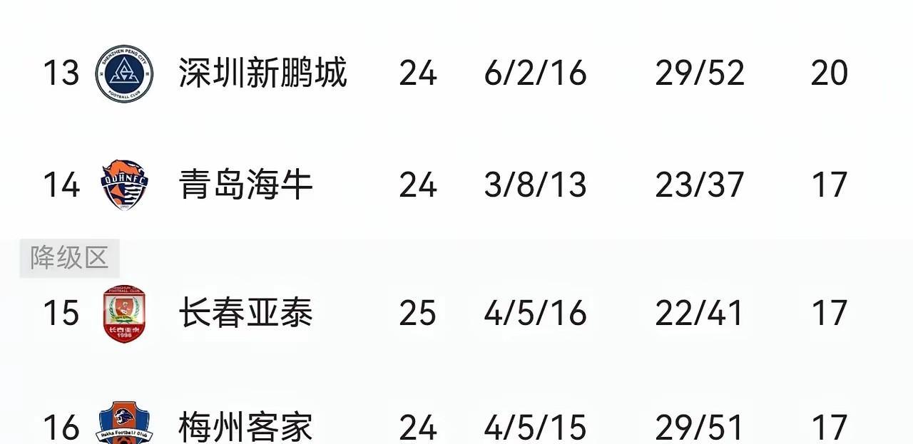 我敢打赌青岛海牛不会降级周六中超保级大战上演过后,长春亚泰3-3浙江队、梅州客