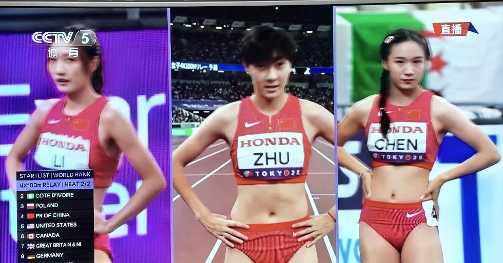 直播世锦赛女子4×100米接力预赛,中国选手梁小静,李玉婷,朱俊盈,陈妤舒代表中