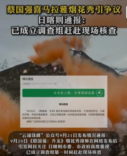 近日,蔡国强在喜马拉雅一场烟花秀搞得沸沸扬扬,日喀则通报:已经成立调查中赶赴现场核实调查取证。 来源:澎湃新闻 有网友直呼:简直是荒唐,怎么会有这样的奇思妙想选择在喜马拉雅山脉大放烟花呢? 还美其名曰“升龙”! 这的确是距离天空最近的地方,但是不能因为喜马拉雅是距离天空最近的地方,就奇思妙想去开这样的先河吧! 据说当年某陈姓导演先是为了拍电影以艺术的名义炸掉了西藏的米堆冰川。 然后又毁掉了云南香格里拉大片的千年杜鹃花海。 不仅没有受到处罚,甚至连谴责都很少,所以才有了现在的蔡国强有样学样。 如果再不重罚,将来还不一定谁又弄出什么惊人之举! 说明这种人一点环保意识都没有,纯粹为了一己之私,毫无底线可言。 这种破坏虽不是永久性的,但对生态短暂的伤害是存在的。 而且西藏可以说是人间的一片净土,多少人将西藏作为自己洗涤心灵的圣地。 圣洁之地不容亵渎,玷污,破坏! 行为艺术不是以牺牲生态环境而彰显所谓的高大尚。 所谓的艺术创想和创新,也要分清场合。 这种行为必须受到绝大多数,热爱大自然、热爱我们最后一块净土的人们,来阻止以及批判! 大家对此事怎么看待呢? #在喜马拉雅放烟花 艺术该被原谅吗# #爆料# #始祖鸟烟花秀争议:自我感动式表达# #飘了的始祖鸟开始玩“火”#