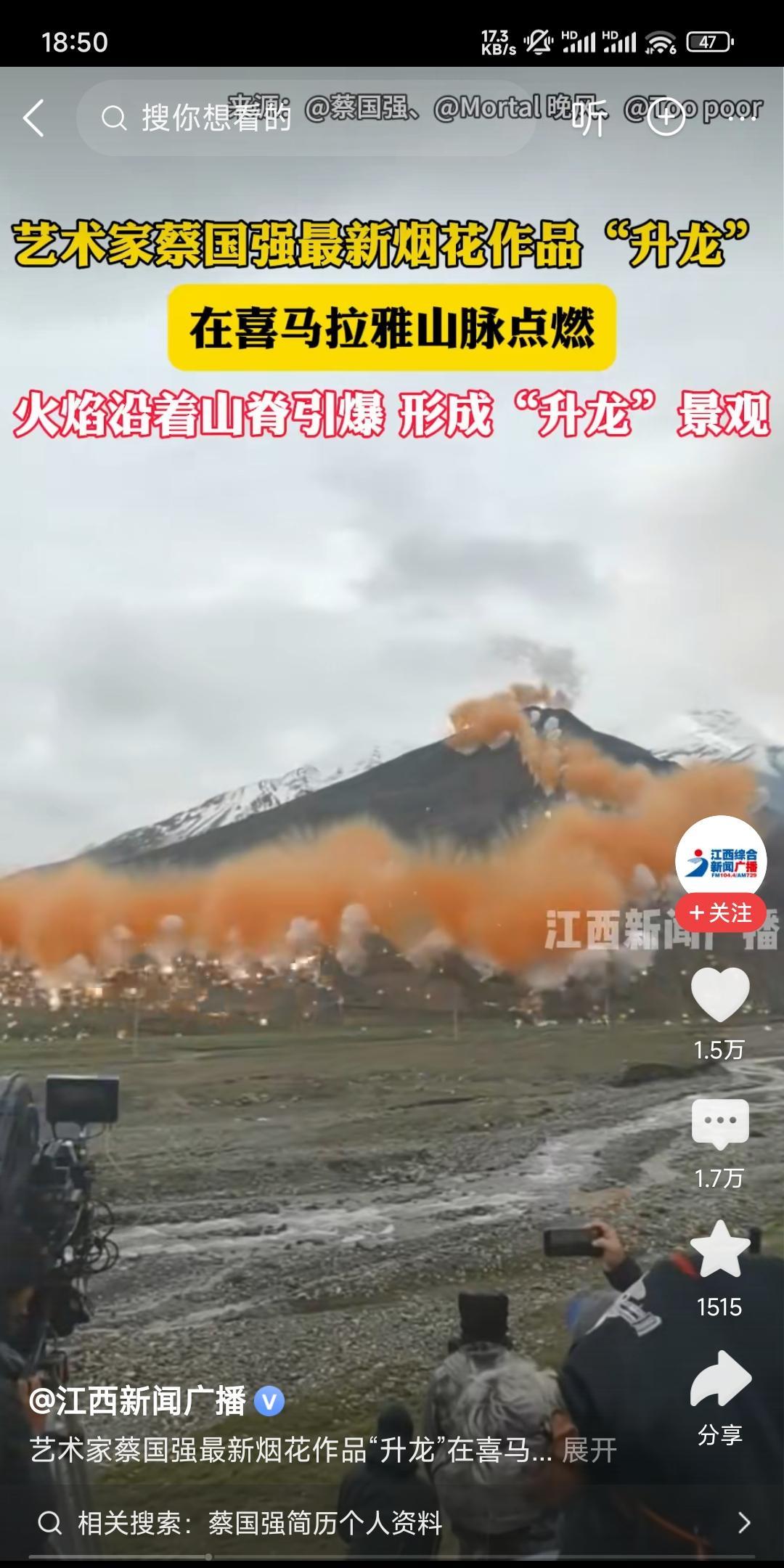 始祖鸟联手蔡国强,跑到喜马拉雅山烟花炸山,我突然觉得有一种悲哀,在全世界都在保卫地球,关注生态环境时,有批人到处放烟心,到处搞污染。 这种就是对大自然没有敬畏之心,喜马拉雅是什么地方,这是世界的屋脊,这是全球少有不被污染的地方,现在又被这些人搞乱了。 不知道有没有人,能够处罚他们,我在看。