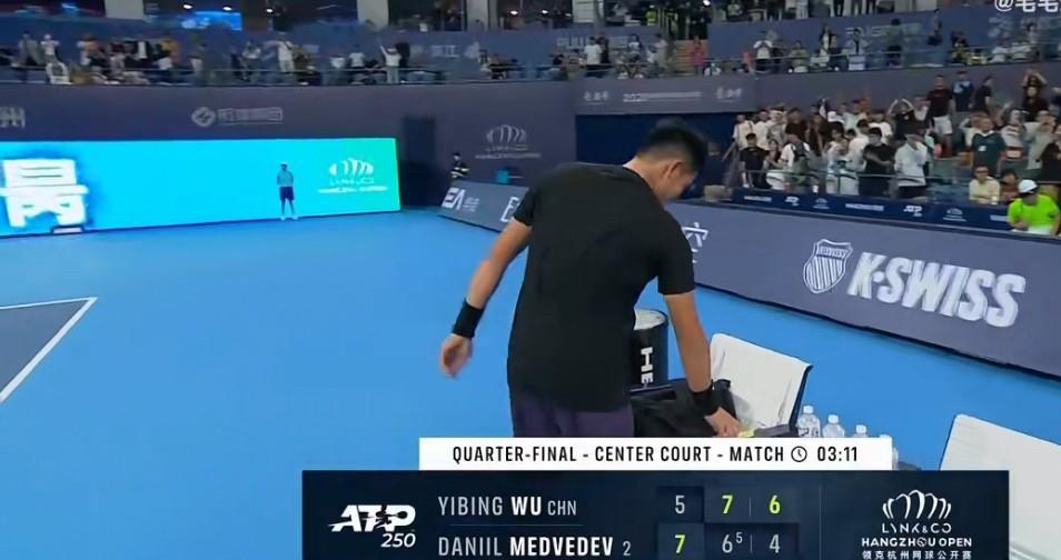 伤愈复出的吴易昺以5-7 7-6 6-4首次击败梅德韦杰夫,晋级杭州赛四强。赛后采访,他说打进杭州赛四强,比他上次达拉斯夺冠还激动。此场胜利,获得100积分和53165美元的奖金,大概率也获得中网正赛资格。