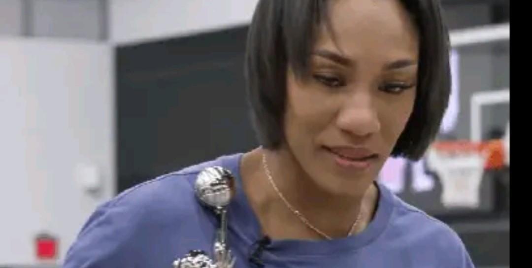 阿德巴约人生中最高光的时刻:亲手把MVP送给女篮历史第一人威尔逊。 威尔逊拿到了