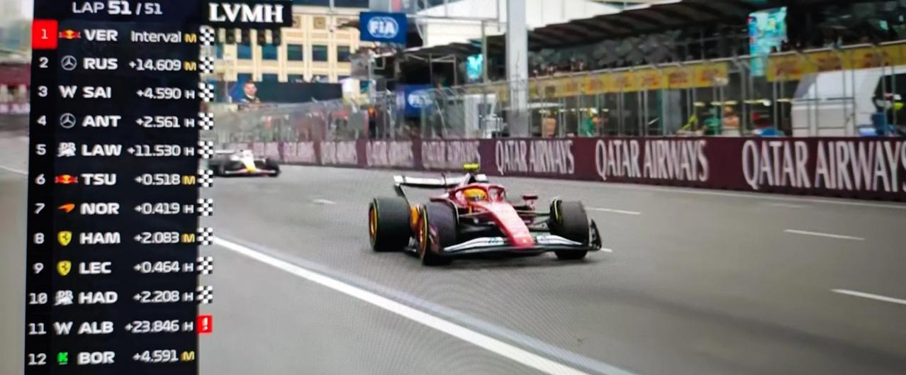 F1阿塞拜疆大奖赛正赛结束,51圈的街道赛,很难超车。维斯塔潘杆位发车拿到冠军,创多项记录。2-8位依次是:拉塞尔、赛恩斯、安东内利、劳森、角田裕毅、诺里斯、汉密尔顿。 第1圈,皮亚斯.特里抢跑上墙,退赛,退出争夺。第38圈诺里斯换胎失误,损失了时间,从进站前的第4掉到了第8。 赛恩斯拿到本场最佳车手。 车手总冠军还有变数,车队总冠军要等到下一站新加坡站。 梅奔车队成为本场最大的赢家。