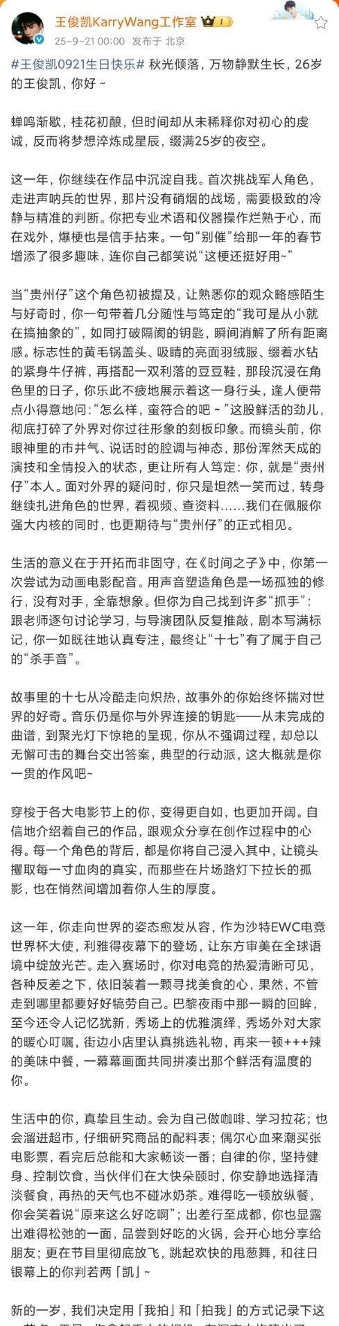 #王俊凯工作室千字长文# #王俊凯26岁了#