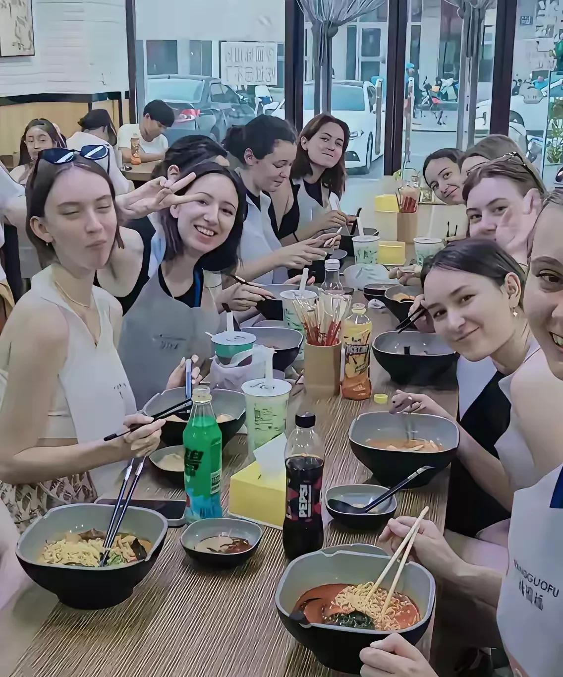 俄罗斯美女居然也会用筷子,没有一点违和感,真是让人刮目相看。中俄免签,大量的俄罗斯美女来中国旅游,看这些大俄美女用筷子吃面一点也不生疏,看来她们在家的时候应该经常用筷子而不是用刀叉,还是筷子好用,刀叉只是老祖宗淘汰的餐具。