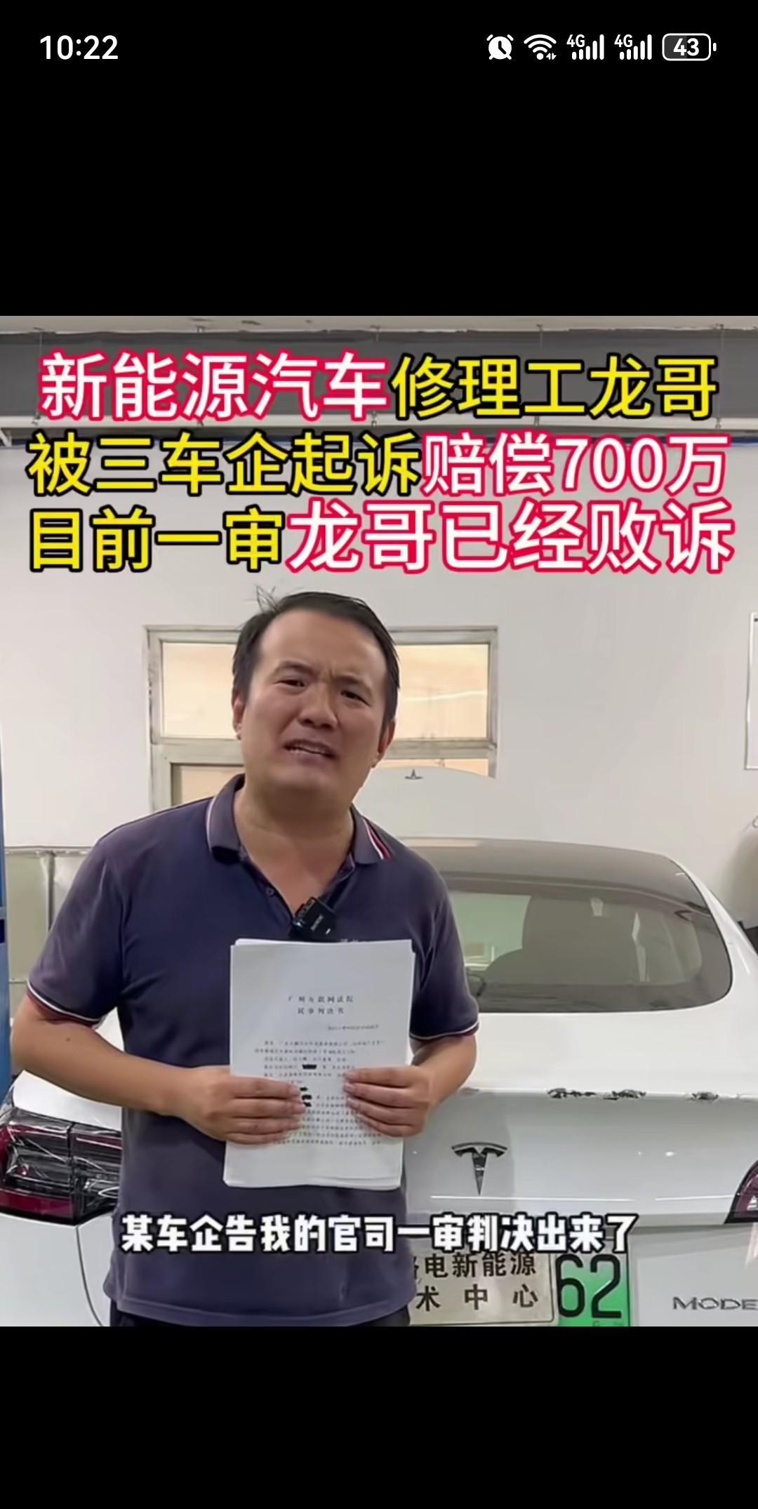 被法院判赔700万,这个叫龙哥的新能源汽修工干过什么?竟被三家车企同时起诉,结果判赔比亚迪500万,赛力斯100万,小鹏100万…… 如果他背后没有金主,那他这辈子是不是就算完了[捂脸] 多行不义必自毙,古人诚不欺我。