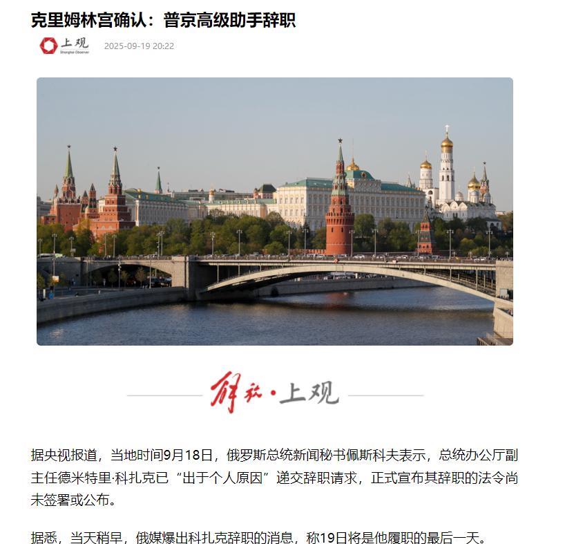 俄罗斯一个高官突然辞职,普京要就此压不住局面了?事情的真相绝不是这样简单。 最近总有人瞎嚷嚷,说 “普京管不住俄罗斯了”,还拿科扎克辞职说事儿,甚至编出 “他反对俄乌冲突才走的”—— 这话听着就离谱,半点儿真凭实据都没有! 科扎克确实辞职了,但要往 “普京控局难”“政治分歧” 上扯,那就是故意带节奏,咱得把这事儿掰明白。 首先说科扎克,他可不是一般人,是普京身边几十年的 “老人”。早在上世纪 90 年代,俩人就在圣彼得堡一块儿干活,后来普京到莫斯科掌权,科扎克也跟着进了中央政府。 能跟这么久还一路往上走,要是跟普京不对路子、不被信任,早被淘汰了,哪能混到总统办公厅副主任? 再看他干的活儿,全是俄罗斯的要紧事:当过副总理,2014 年索契冬奥会那么大的场面,就是他牵头管的,顺顺利利没出乱子。 2020 年还成了对乌克兰政策专职代表,后来又管对外关系、边境合作 —— 这些都是跟国家利益绑死的差事,普京不信任他,能把这些活儿交给他? 这次辞职,9 月 18 号爆的消息,俄媒说 19 号是最后一天班,但普京的新闻秘书佩斯科夫早说了,科扎克是 “个人原因” 递的辞呈,正式文件都还没签呢。 咱琢磨琢磨,“个人原因” 能有啥?科扎克都 66 岁了! 咱这儿男的 60 岁就退休,他干了一辈子,从检察官到高官,忙前忙后几十年,现在想歇口气、陪陪家人,这不太正常了吗?咋就成了 “反对冲突”? 再说 “反对俄乌冲突才辞职”,更是离谱到家了,要是他真反对,2020 年管对乌政策时咋不辞职?冲突爆发后还在办公厅管相关事务,现在才走? 从头到尾,不管俄政府还是他自己,没说过一句 “反对冲突” 的话 —— 这全是外人瞎猜,硬把 “正常辞职” 往 “政治分歧” 上套,用心不正! 还有人说 “他一辞职,俄罗斯政坛炸了锅”,这也吹得没边儿了。 俄媒就提了句 “有人关注”,哪儿来的 “炸锅”?俄罗斯官员任免有规矩,资深官员到岁数辞职,是再正常的人事变动。 更何况佩斯科夫还说,科扎克要么去商界,要么可能当总统驻西北联邦区特使 —— 这是体面交接,不是被排挤,真有矛盾能安排这么妥当? 那些传 “普京控不住局” 的人,根本不了解俄罗斯。 普京在俄罗斯支持率一直稳得很,这些年应对西方制裁、处理民生事儿,都有清晰思路,俄罗斯国内也稳定,工厂照开、商店照营业。 一个官员正常辞职,咋就扯到 “控不住局”?这就跟咱身边人到岁数退休一样,能说 “单位领导管不住人了”?纯是偷换概念! 说到底,这些谣言就是想借辞职抹黑普京,动摇大家对俄罗斯稳定的认知。 可事实摆这儿:科扎克辞职是个人原因,跟反对冲突、普京控不住局半毛钱关系没有;俄罗斯政坛没乱,普京领导也稳得很。 别听那些人瞎编,看事儿得看实锤,别被带偏了!