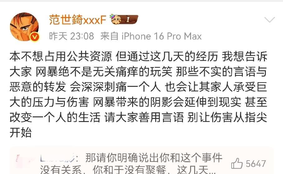 范世錡都懵了, 他怎么都没想到火能烧到自己身上,短短几天,接连被网暴。 22号晚上11点发文,本来不想占用公共资源的,现在不得不发声了,希望大家不要网暴了,抵制网暴。 警方通报都已经出来了,评论区争议还是不断。