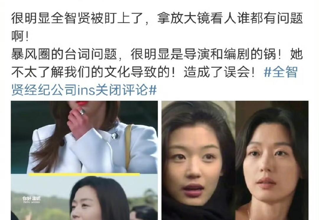 韩剧《暴风圈》剧情台词争议发酵多天,即便全智贤很多代言被撤,她本人和经纪公司仍旧没有出来解释,经纪公司甚至把ins评论关闭。 这时候,反倒是某些国人开始出来给全智贤洗白,有两种说辞,第一种,全智贤只是演员,导演和编剧才应该出来解释,不能让全智贤承受,第二种,剧情根本就不是这样的,是被断章取义了。 也不知道这些给全智贤洗白的人咋想的,韩国人的尿性还不知道吗?他们对中国的态度不是很明显吗?再说了,韩国和美国联手制作的剧,而且涉及中国剧情,不可劲儿贬低才怪呢。 同时,横店影视城评论区被冲了,此前,横店影视城和韩国短剧达成合作,允许在横店影视城拍摄,这不是养虎为患吗?到时候,更有借口霸占中国文化。 限韩令继续吧,永远不用取消才好。#秋日生活打卡季#