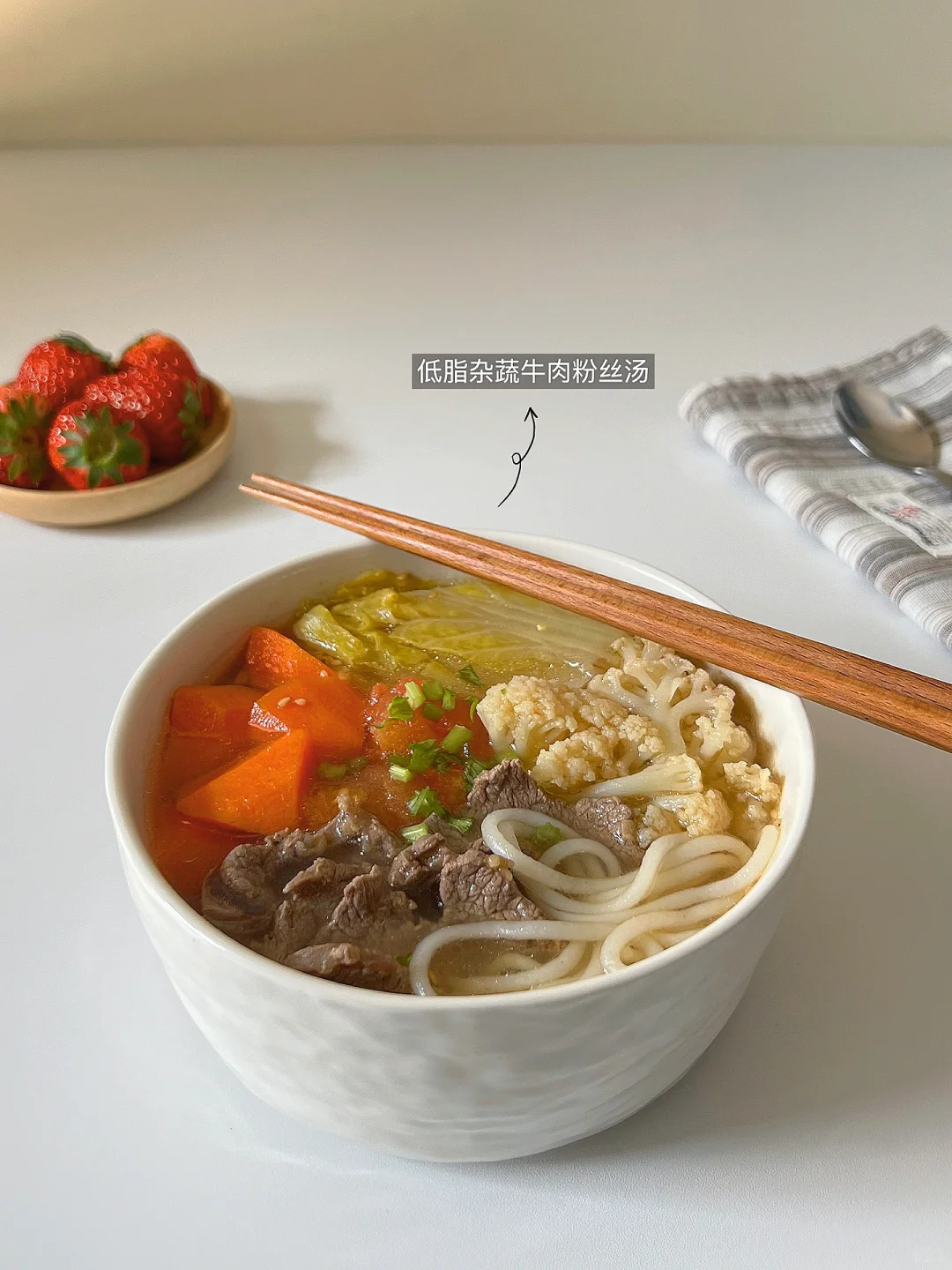 今天这碗我称之低脂杂蔬牛肉粉丝汤~