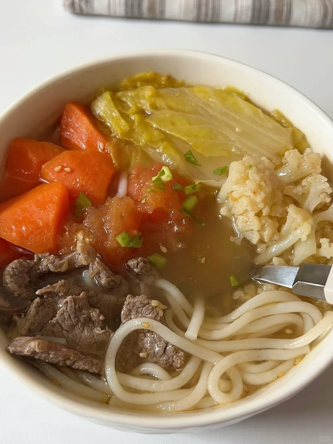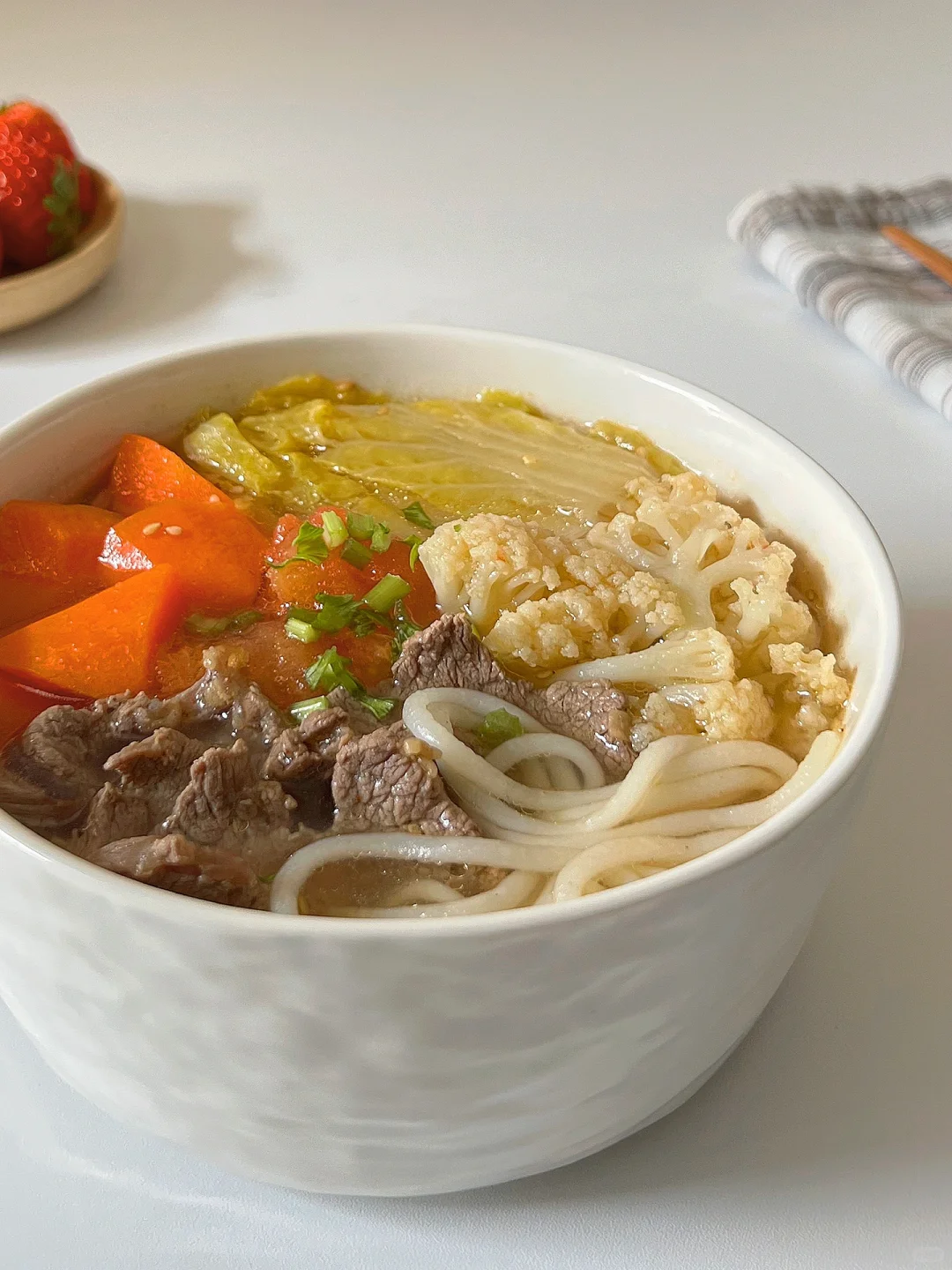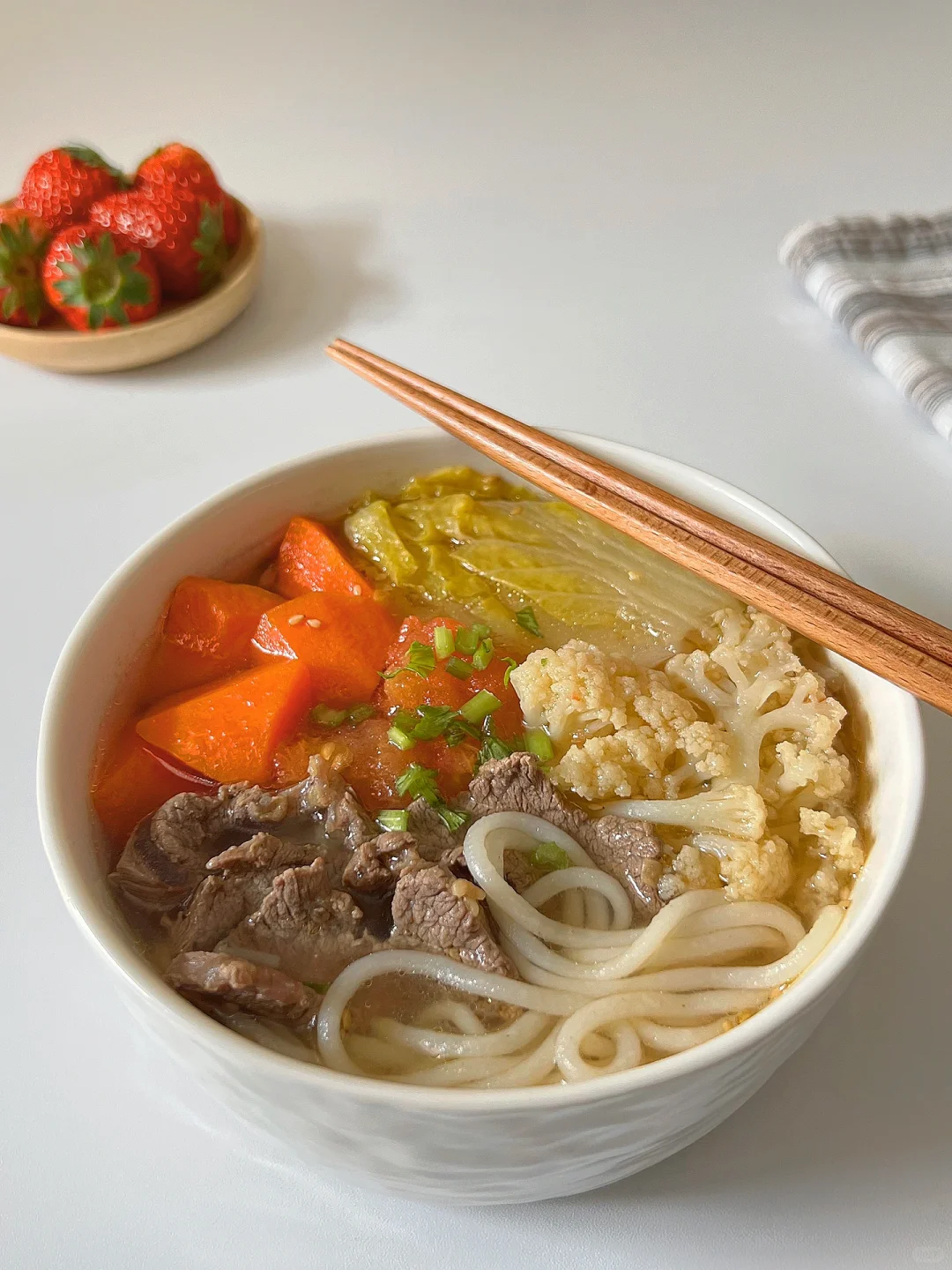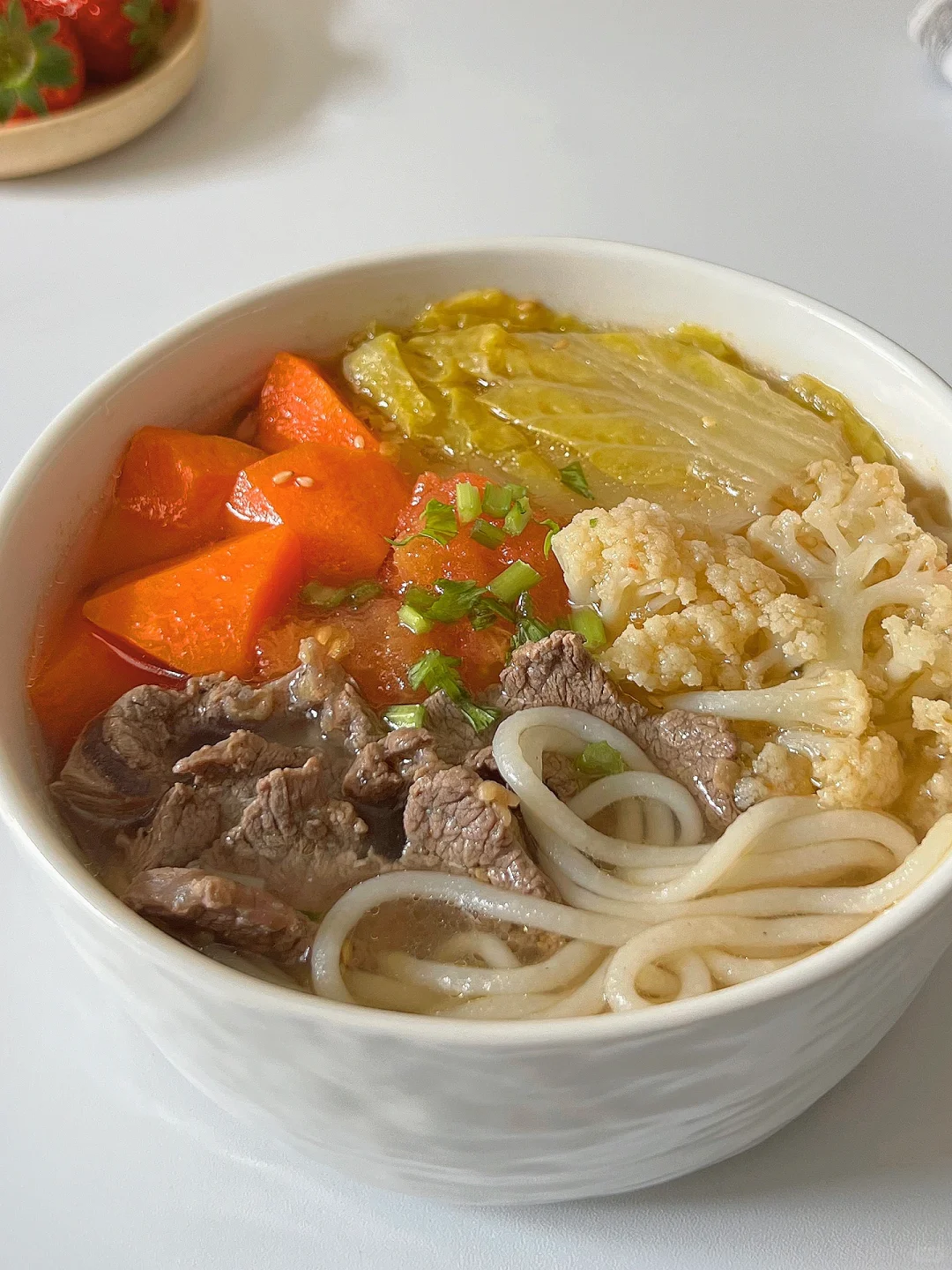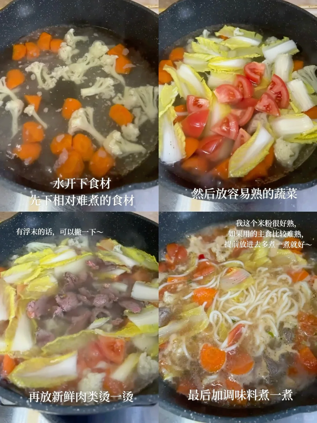 🍅 食材:牛肉、胡萝卜、娃娃菜、番茄、花菜、粉丝