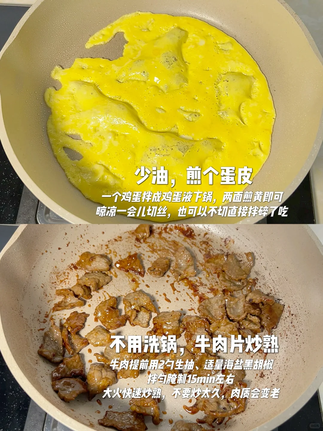 3⃣️ 不用洗锅,下入牛肉片快速炒熟;