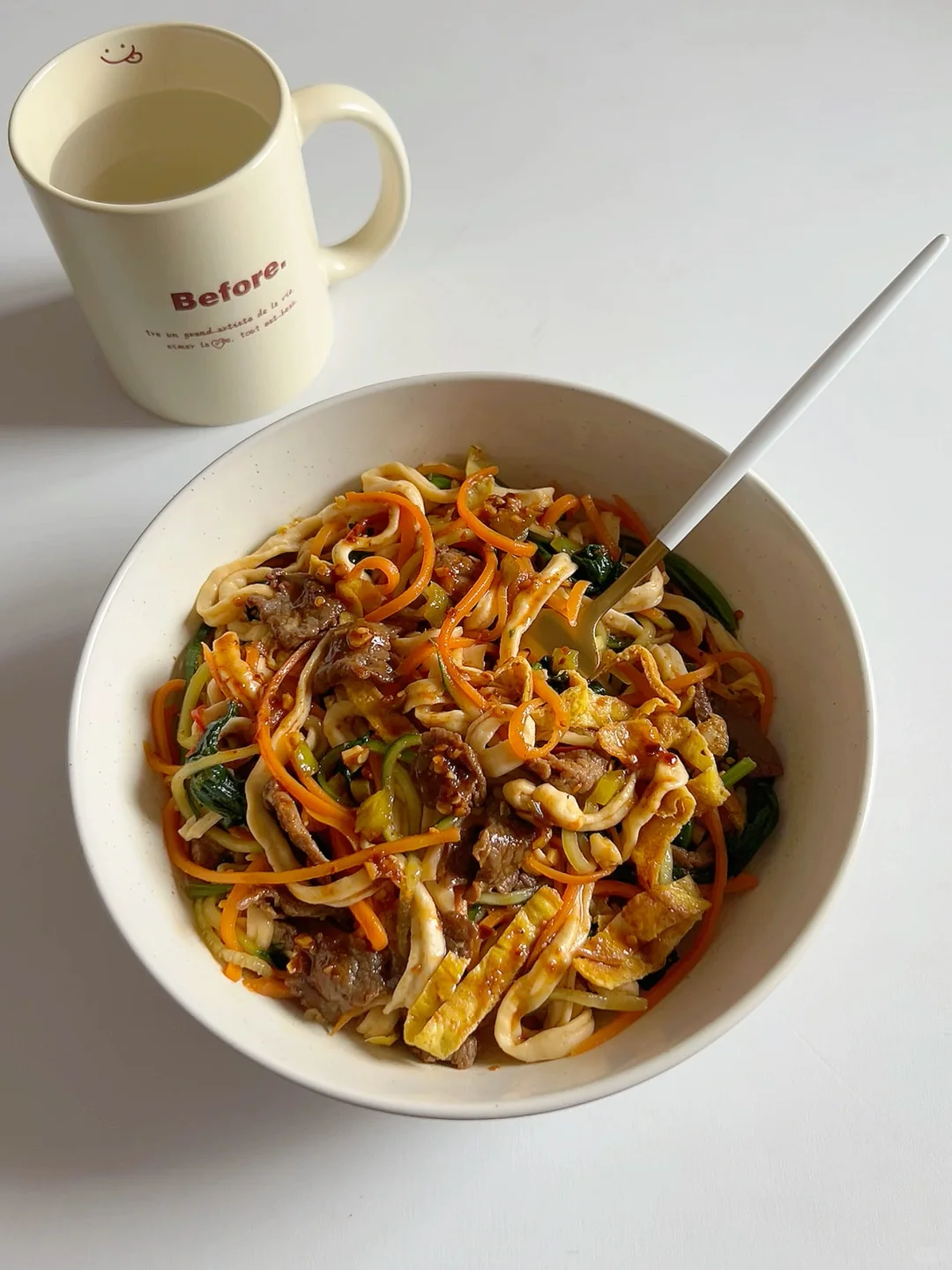 今天吃的是蔬菜➕鸡蛋➕牛肉拌面