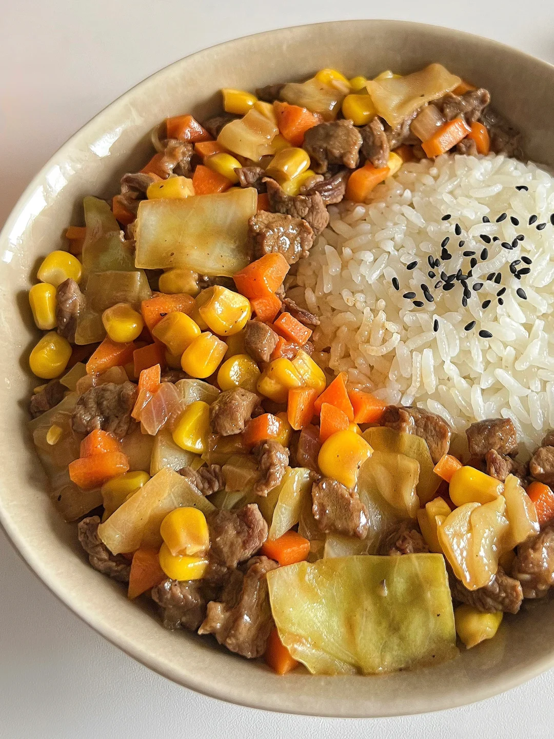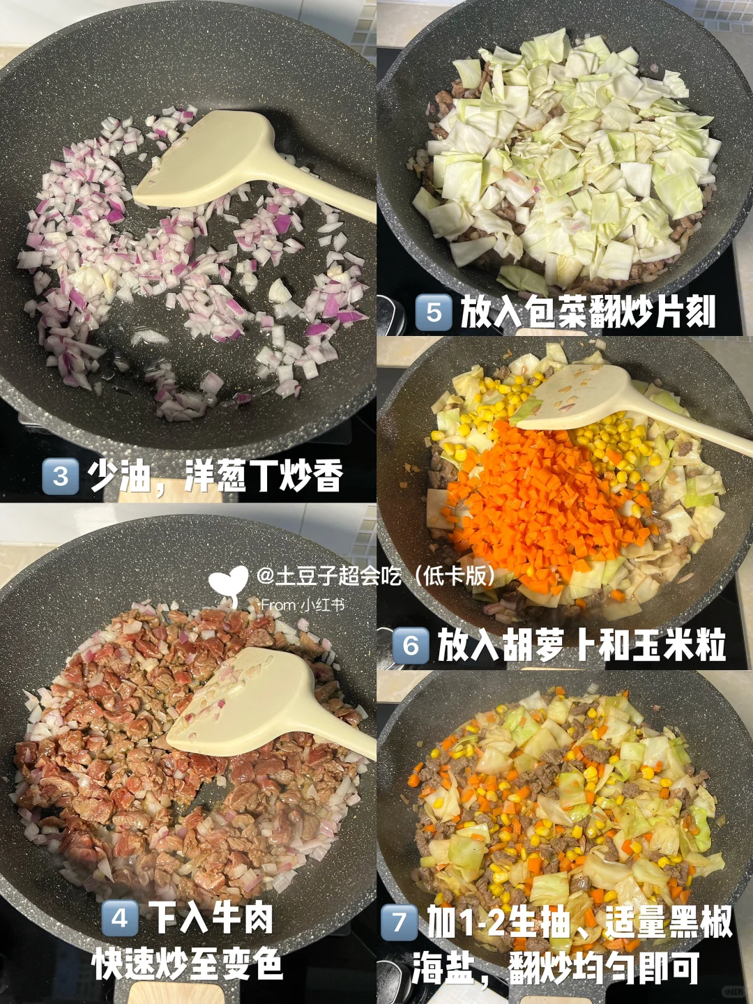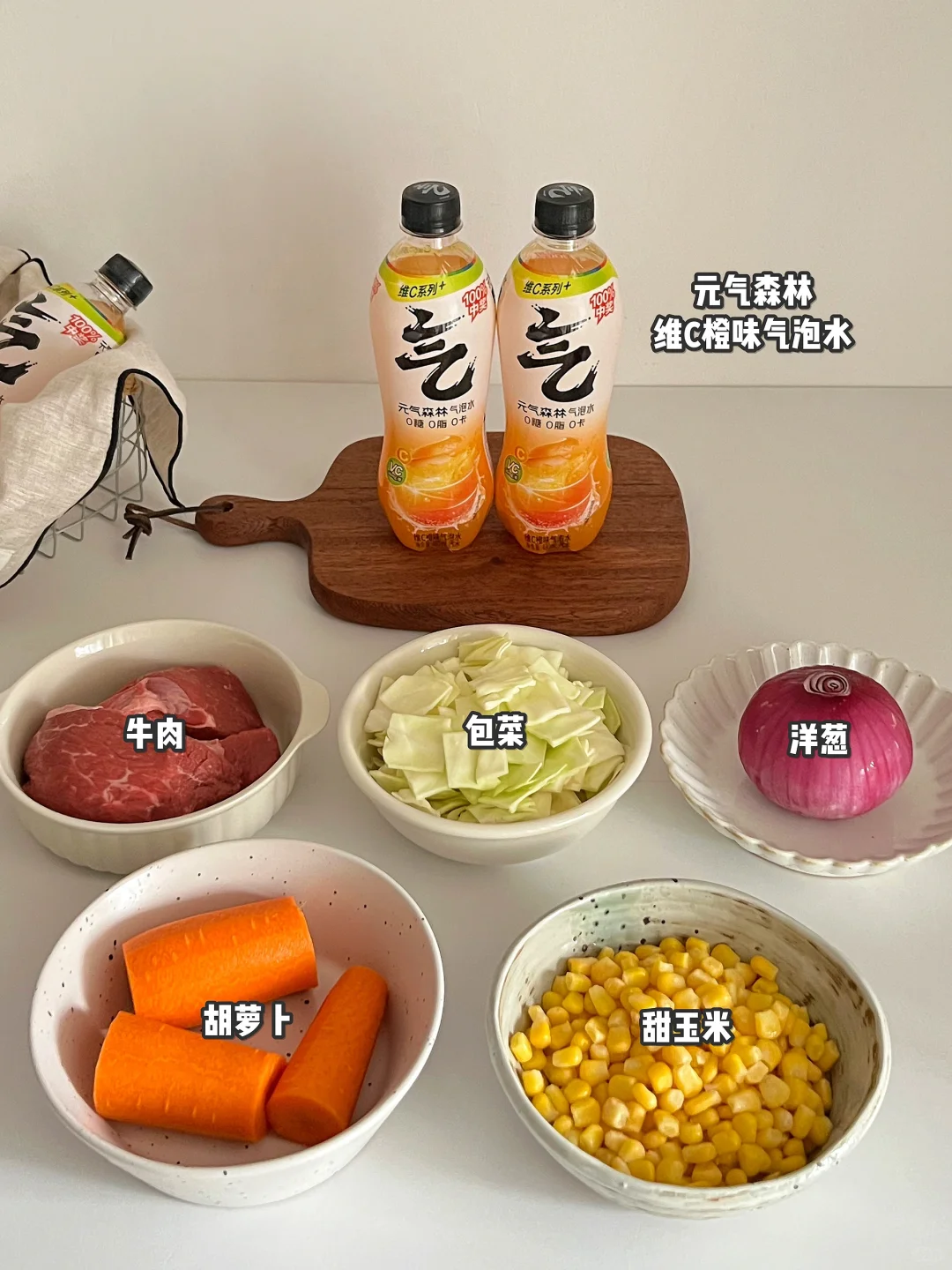 🥩 食材:瘦牛肉、包菜、洋葱、胡萝卜、玉米粒、葱姜