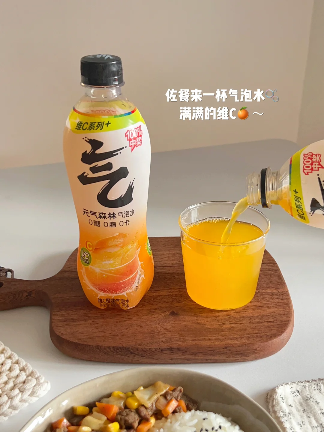 最近天气越来越热了,吃饭的时候超喜欢搭配一杯维C橙味气泡水🫧 口感超爽,喝完感觉人都精神了[哇R]