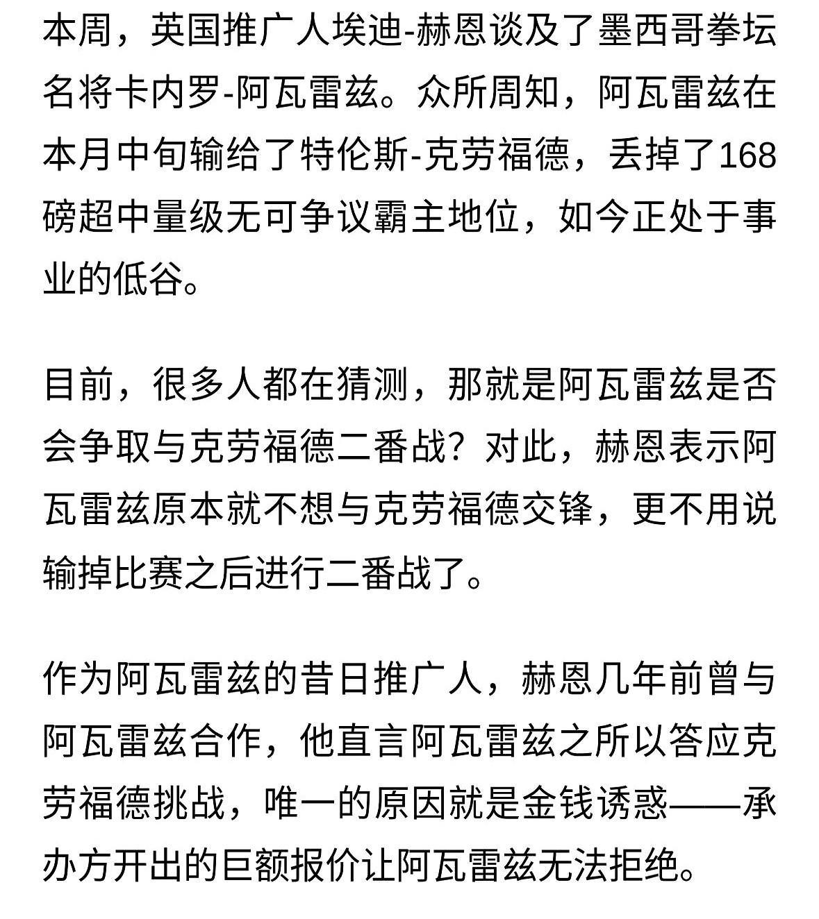 阿瓦雷兹压根不想打克劳福德 老推广人一句“就算有合同,他也不会再打”,把克劳福德