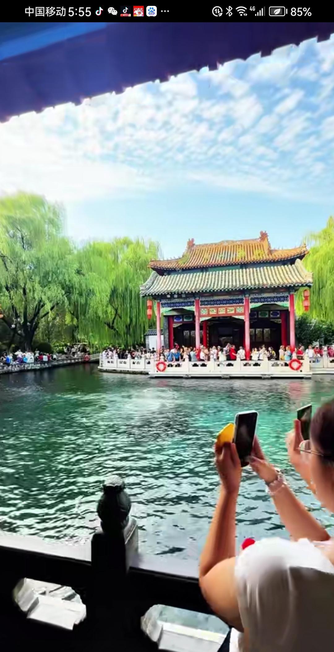 #公园美丽景随拍# 《七绝·游园记》/马进鹏 柳丝垂绿水悠悠, 古榭红栏映日头。 舟上佳人抬镜录, 一城风色入屏收。