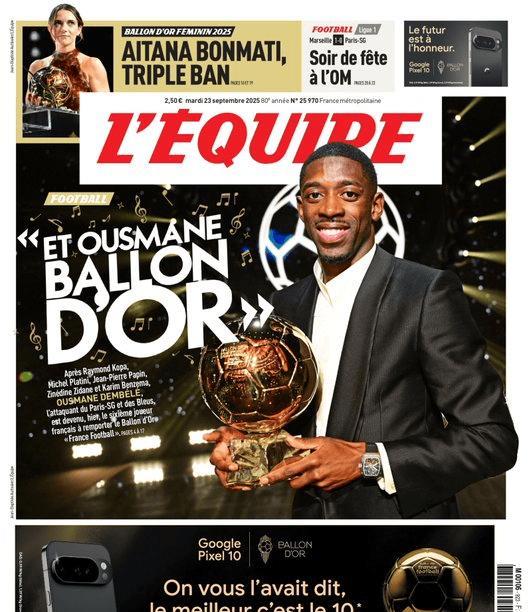 从“香球王”变成了金球先生 5年前谁能想到登贝莱可以有如此成就? 2025年金球
