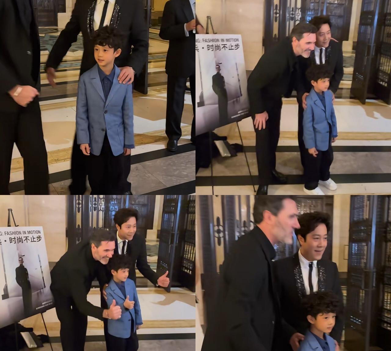 蔡国庆儿子居然这么帅气!最近蔡国庆现身伦敦,参加胡兵举办的时装周,他一身黑色西装露面帅气十足,小儿子烫了卷发,穿着蓝色西装,父子俩一起与老外合影,这应该是蔡国庆的二儿子吧,大儿子之前参加过节目,两个娃的颜值都高啊
