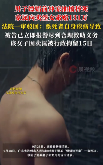 广东连州,一出租屋的浴室门突然被撞开,53岁的谢某赤身裸体栽倒在地,失足女罗某攥着手机的手不住发抖。这是2025年5月21日下午4点30分,连州市某出租房内发生的惊险一幕。监控画面显示,谢某在第五次交易前冲凉时突发抽搐,罗某从惊慌到报警仅用2分钟。警方赶到时,男子已无生命体征,法医鉴定为心源性猝死。这场原本见不得人的交易,因谢某的意外死亡演变成轰动一时的民事索赔案——其妻女将罗某告上法庭,索赔131万元。
