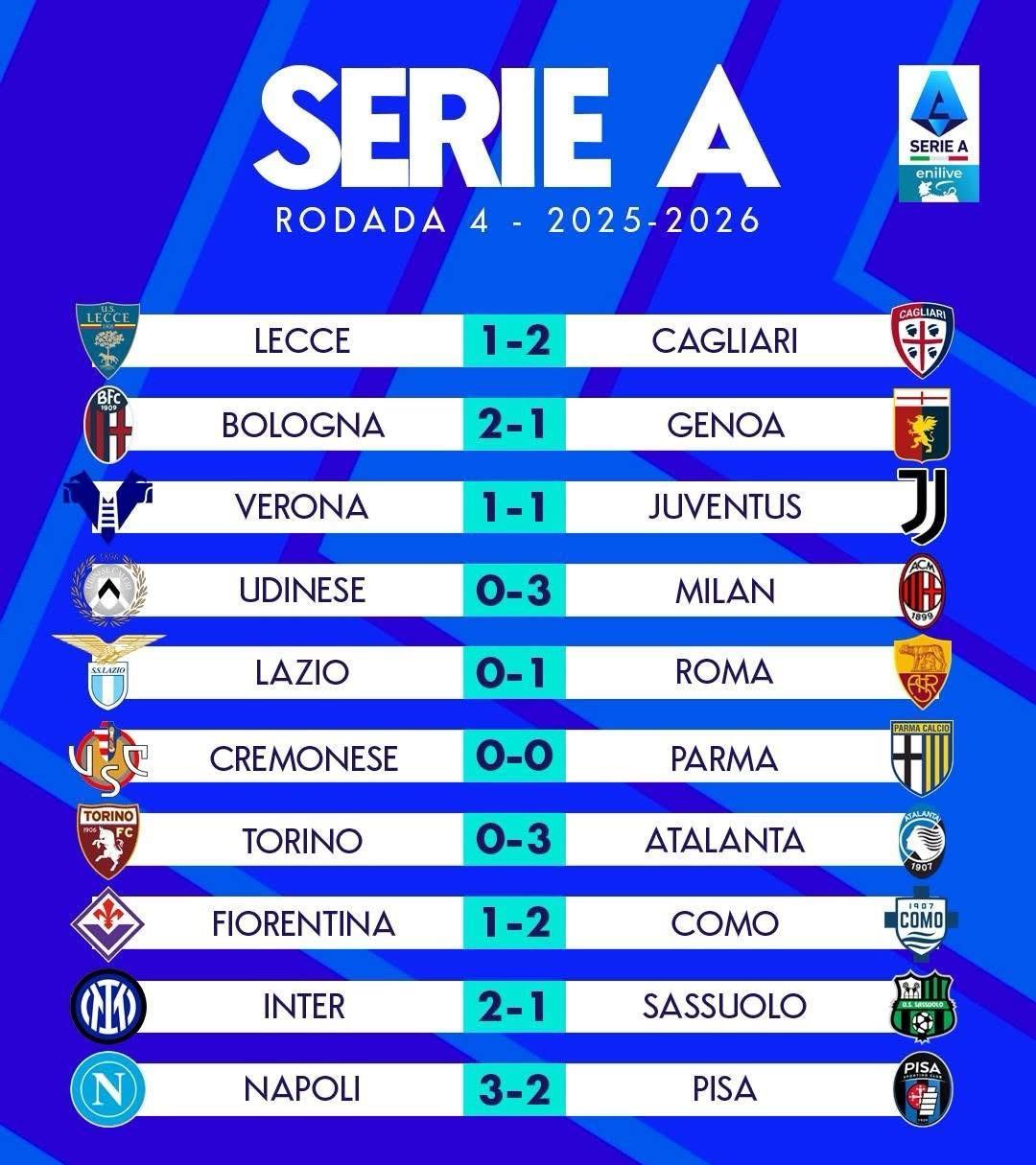 【SerieA】2025-26意甲4/38轮赛果及积分榜、射手榜 赛果速览 积