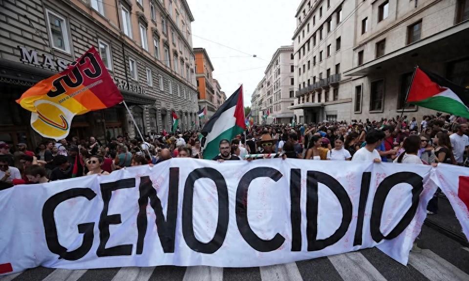 她的政府仍然是以色列的坚定支持者,并拒绝了承认巴勒斯坦国的呼吁。周一,全国各地举行集会和罢工活动,声援巴勒斯坦。 周一,以媒称,催泪弹和混乱:意大利城市因反以色列示威而震动; 周一,在意大利,暴力反以色列抗议活动席卷全国,码头工人封锁港口,米兰、罗马和那不勒斯爆发冲突。总理梅洛尼谴责骚乱,警告意大利公民将面临后果。 当地时间22日,意大利罗马、米兰、都灵等多地举行集会和罢工活动,声援巴勒斯坦。 亲巴勒斯坦的阿拉伯示威者周一在意大利与警察发生冲突,根据 路透社 的报道,全国性的罢工 - 由工会召集 - 在几个城市变得暴力。 抗议活动旨在谴责以色列在加沙的军事行动,在罗马有数万人集会,码头工人还封锁了主要港口。 在首都罗马,超过20万人聚集在特米尼火车站前的广场,现场巴勒斯坦旗帜随处可见,抗议者高呼“自由巴勒斯坦!”、“停止屠杀!”等口号。 在米兰,抗议群众在中央车站袭击警察,砸碎窗户并投掷椅子。警察使用催泪瓦斯进行回应。意大利的ANSA新闻社报道了超过10人被捕以及大约60名警察受伤。 意大利总理焦尔吉娅·梅洛尼谴责暴力行为,称其为“与团结毫无关系的破坏”,并警告意大利公民将有后果。她的政府仍然是以色列的坚定支持者,并拒绝了承认巴勒斯坦国的呼吁。 在威尼斯,警方使用水炮驱散港口封锁。在热那亚、里窝那和的里雅斯特也发生了类似行动,码头工人旨在阻止武器运往以色列。 罗马有成千上万的人在主要火车站附近集会,封锁了一条主要环形公路。在那不勒斯,抗议者冲进火车站,短暂占领了轨道,扰乱了服务。在博洛尼亚,高速公路在警方干预前也被封锁。