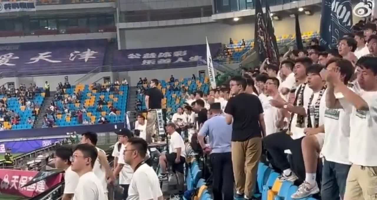 姜至鹏对天津球迷做出戴“手铐”动作! 近日,天津津门虎在主场一球小胜深圳新