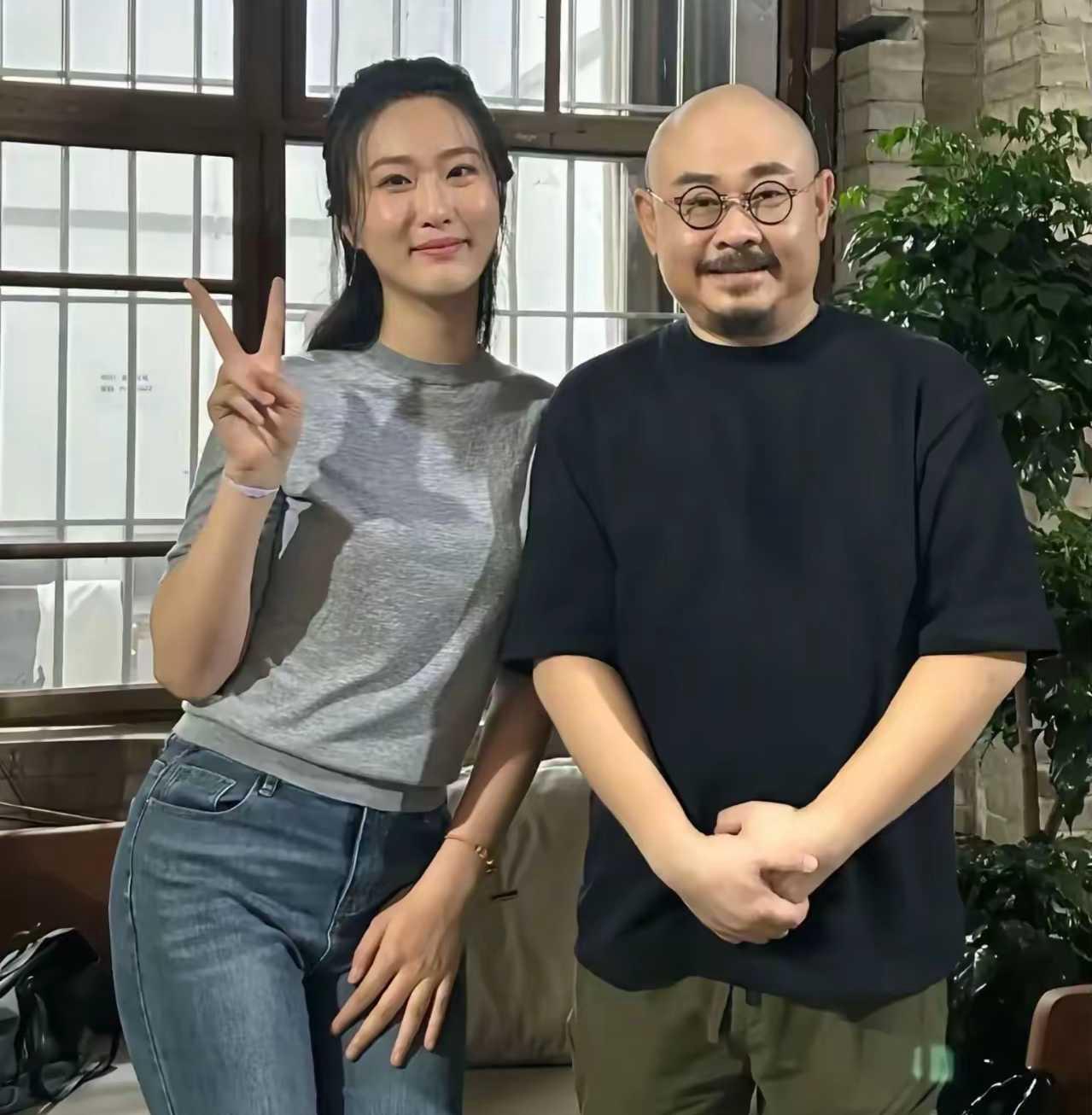 例身弯腰和老师合影,这就是尊敬老师的好姑娘,她叫啥名子想不起来了。
