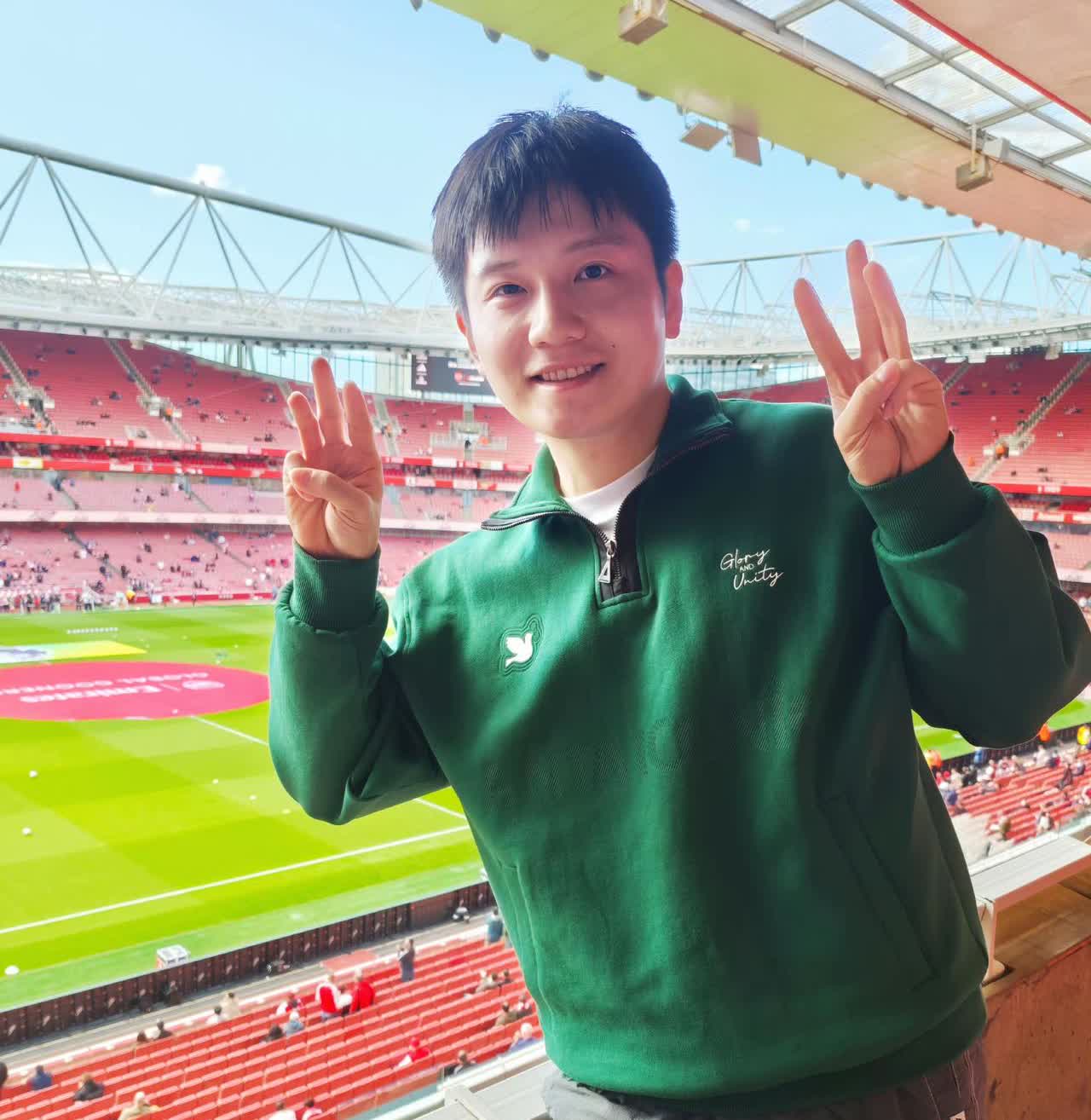 东东终于更新微博了。✌✌ 原来他是受Premier League的邀请,跑到英国现场看英超了。 这是他第一次到现场看英超比赛,他跟我们到现场看他比赛的感受一样,也会为之震撼,也会为之兴奋。 在赛场边观赛的他,连拍照都是萌萌哒,别人拍照比✌,都是出两根手指的,但他就不走寻常路,他的✌是伸出三根手指,主打就是与众不同[笑哭] 他说:如此英超,怎能不爱? 我想说:如此东东,我们怎能不爱?难得出来放松,你开心就好!