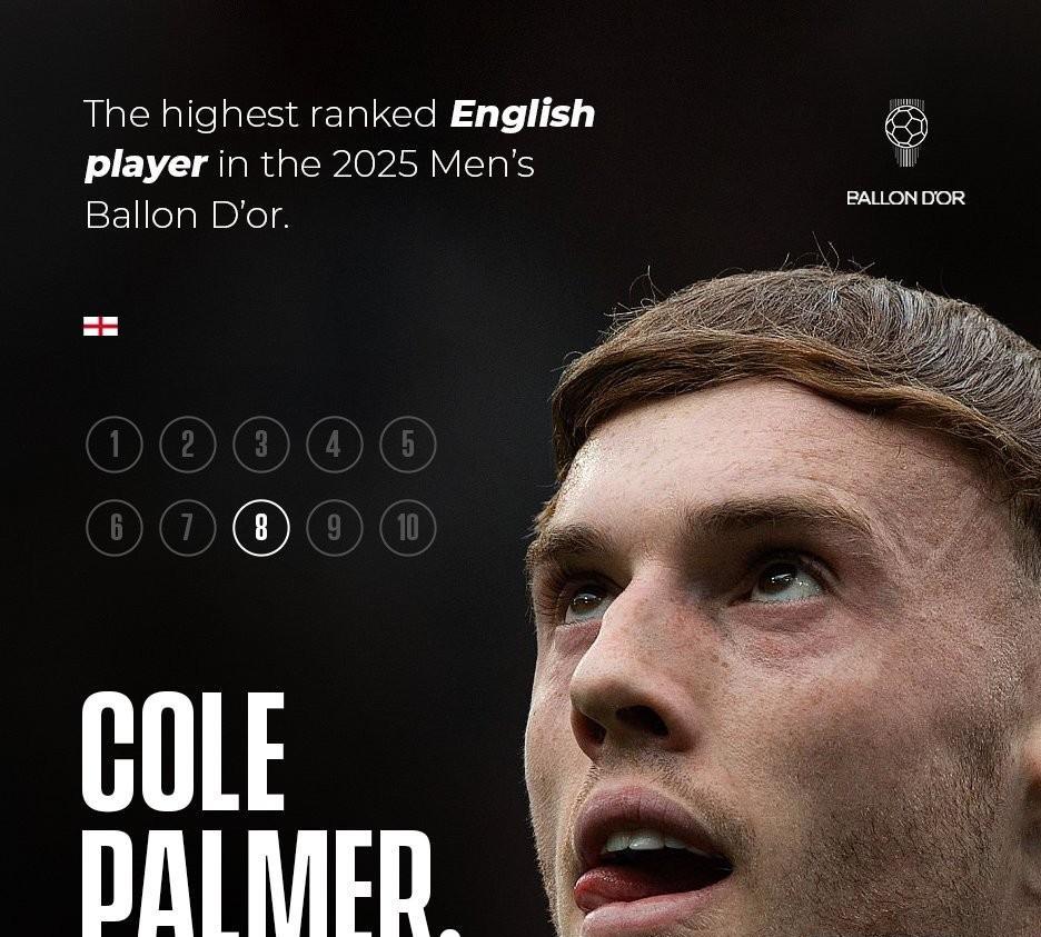 100场蓝军正式比赛,帕尔默为切尔西贡献了45个进球和29个助攻。 妥妥超巨级别的数据,就单以进球率来计算,帕尔默的场均进球也有0.45,进球贡献率则有0.74,很多世界级前锋职业生涯进球率也不过0.5上下。 2025年金球奖帕尔默进入了最终三十人提名,这是他第二次获得提名,也是切尔西唯一一位,最终金球奖排名第八,这已经是2025年金球奖英格兰男子球员最高排名,他才24岁,切尔西球迷正在见证阿扎尔后蓝军最强球星的成长。 4500万英镑签下帕尔默堪称波利时代最值的交易,没有之一! #帕尔默##金球奖##足球##切尔西##英超##足球狂热分享#