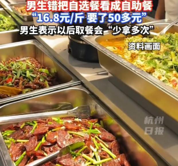 “太离谱了!”山东一男生军训后到食堂,误将“自选餐”(16.8元/斤)看成了“自