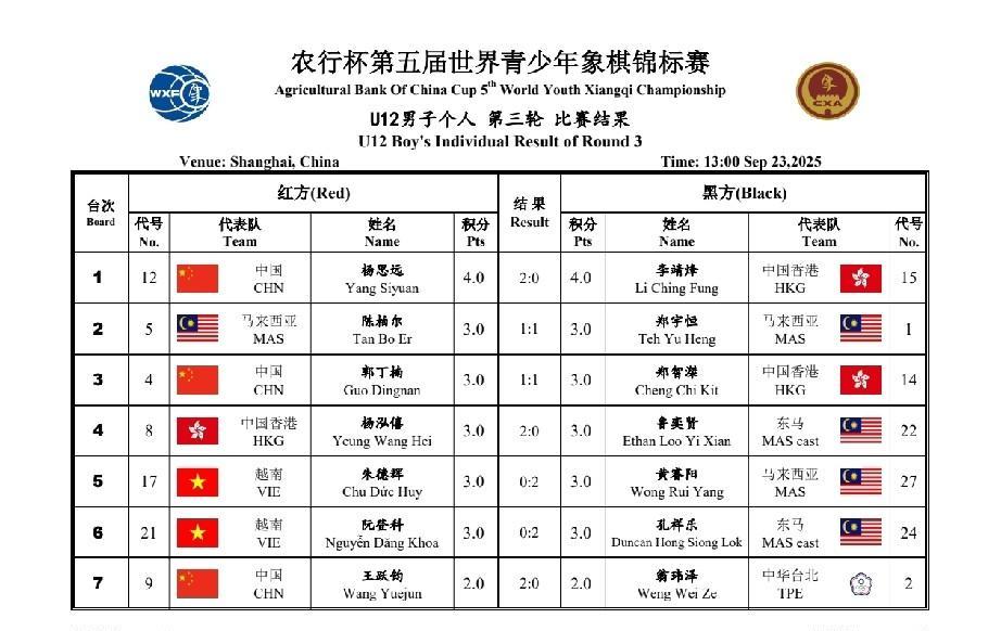 2025世锦赛第三轮战报,孟繁睿尹昇取胜,唐丹创造奇迹! 尹昇拖住了赖理兄,都是3分,孟繁睿4分领跑,今天三人都赢了,孟繁睿6分领跑,尹昇赖理兄5分,冯家俊与黄学谦本来4分,队友打平5分,这样孟繁睿一骑绝尘6分第一!和他并肩的,还有中国台北的葛振衣,战胜了新加坡吴宗翰! 唐丹强变差点翻车,几度惊险,对手把握不住,残棋陷入僵局,对手太想赢,贪功忘守,唐丹仙鹤伸腿,惊天反杀,所以棋迷捏了一把汗,主持人直呼唐丹是真厉害,这样都能赢,可以说是创造了奇迹! 青年组,军长徒弟杨恬浩一路高歌领跑! 小结: 中国队太厉害了,文有孟繁睿尹昇,武有唐丹,强杀敌将,青年有军长高徒,看样子,这次世锦赛中国队会大胜,大概率将所有金牌收入囊中,加油!
