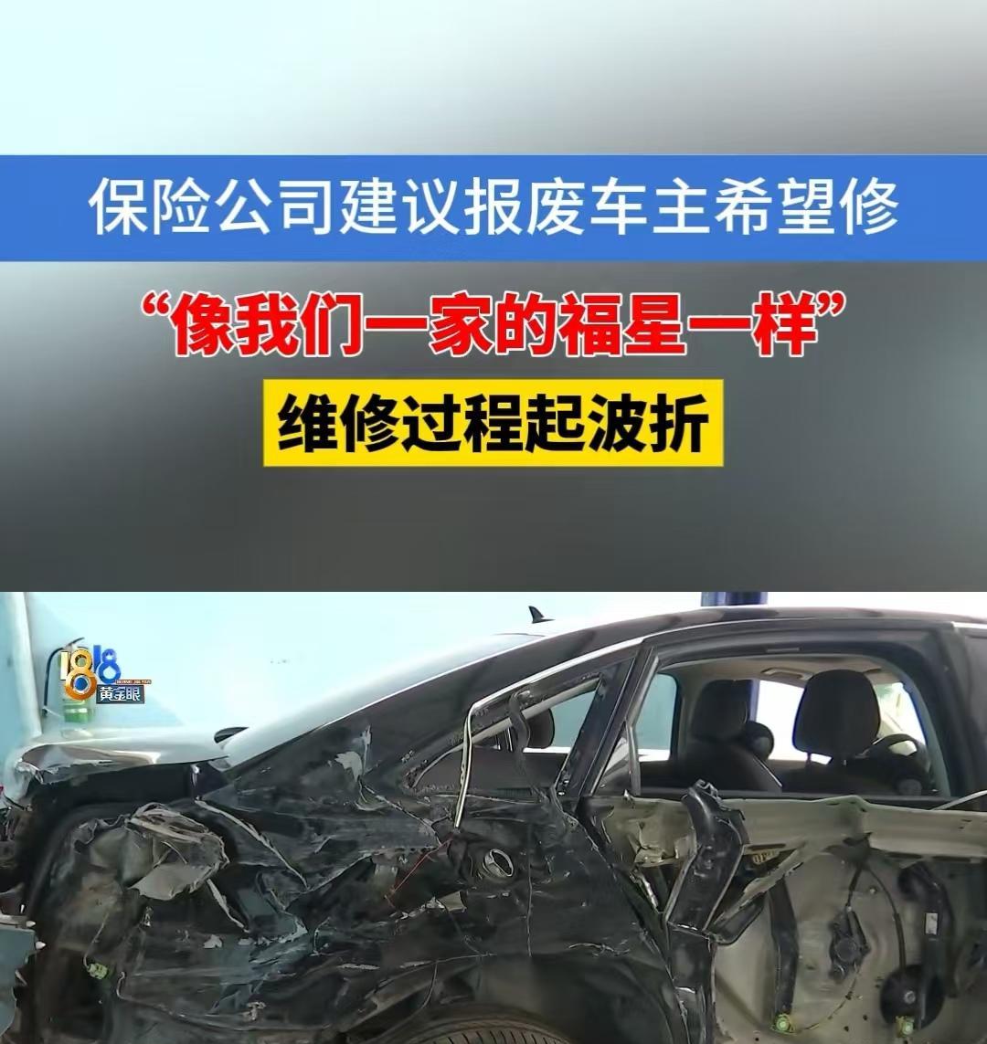杭州,一男子的车撞坏后,保险公司想将车报废,报价14万,男子不同意,称和车子有感