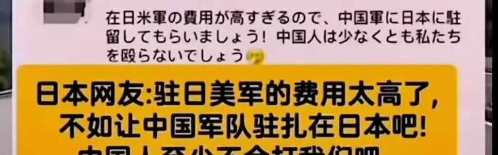 有日本网友认为,驻日美军的费用实在太高了,不如邀请我军进驻日本。该日本网友还认为