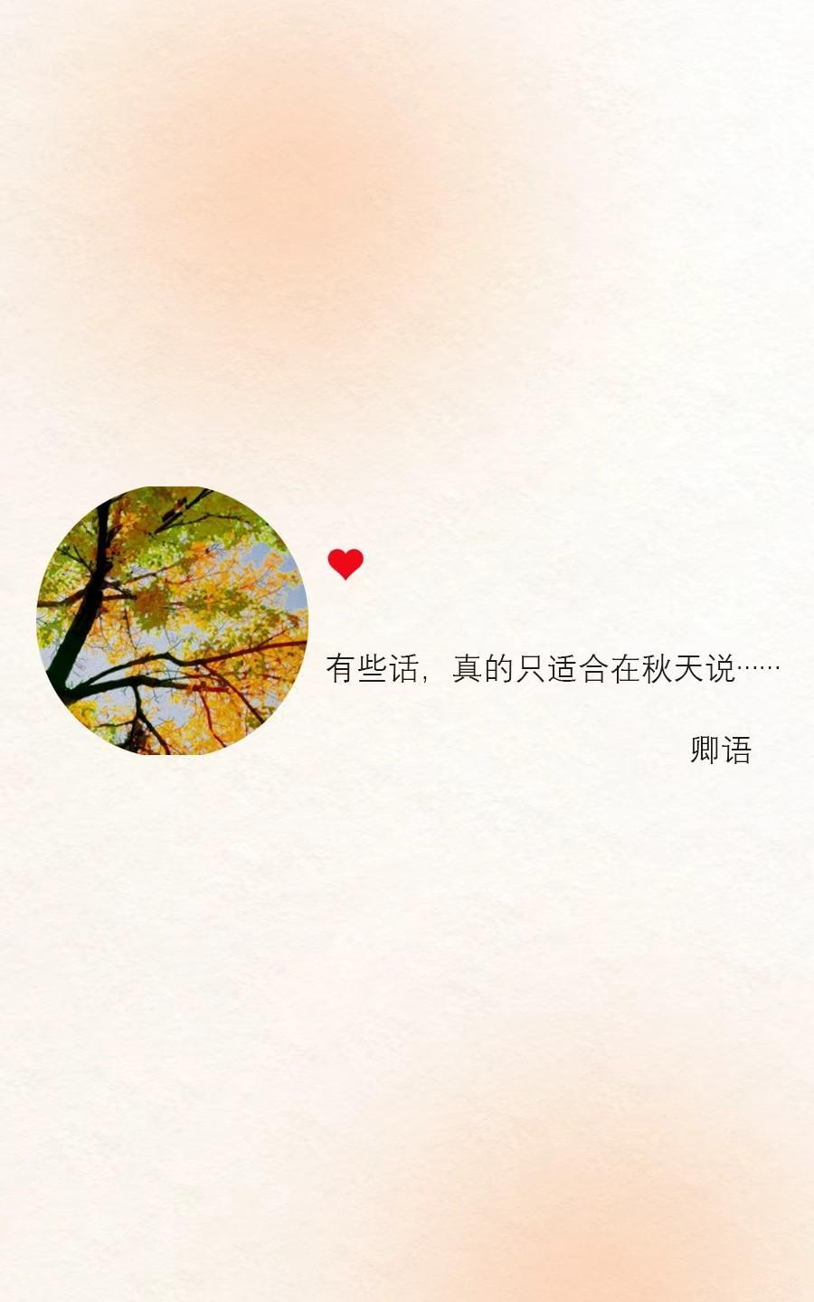 我好像 已经慢慢喜欢上了秋天, 喜欢啾啾虫鸣的夜晚, 喜欢铺满落叶的路面, 喜欢小推车上 温热的糖炒板栗, 让微凉的风里多了一丝的香甜, 喜欢挂在枝头 摇摇欲坠的柿子, 红的比春天里的花朵还要娇艳, 喜欢抬起头 看大雁飞过蓝天,消失在遥远的天际线, 喜欢低着头 和从前的自己,聊一聊天, 与回忆里的那个人,说一说想念…… 《秋天》文/卿语 [比心]遇见文字,遇见美好,记得关注哦~