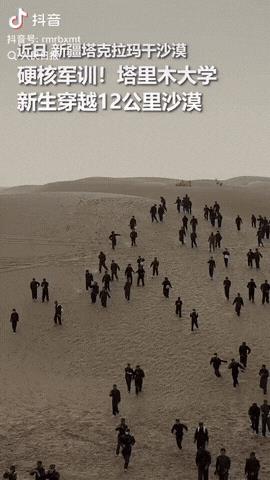 “太硬核了!”新疆,塔里木大学新生军训,学校竟组织新生穿越塔克拉玛干沙漠,新生们足足在沙漠里徒步了12公里,学生们穿越沙漠的景象太壮观了! 有网友说:这军训太硬核了!我读书那会儿的军训跟儿戏似的,都在操场上。 也有网友说:12公里太短了,纯属拍照打卡,嬉嬉闹闹就到了,应该翻倍! 别说在沙漠里徒步12公里,就是在平地上徒步12公里我也做不到,沙漠里替徒步太累了,走过沙漠的都知道,走一公里都能累趴,能坚持走完12公里的学生都是好样的! 在我看来,能报考这个大学的孩子都是勇敢的人,这段经历很独特,这青春飞扬的日子将会成为他们一辈子的回忆,太有意义了! 这才是令人向往的军训!年轻人就应该朝气蓬勃,能吃苦,不怕累!这才是青年人该有的样子。 信息来源:人民日报