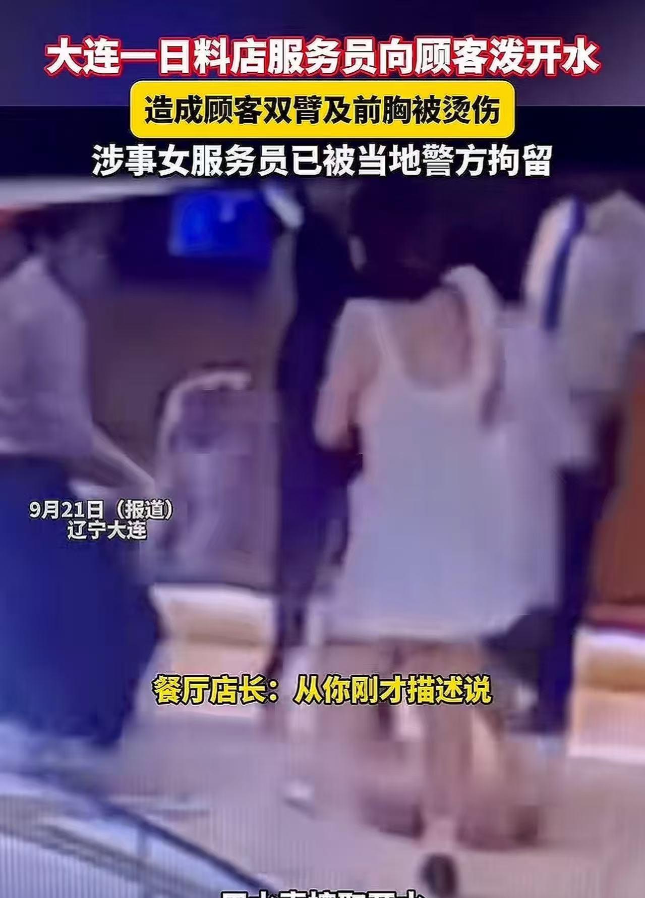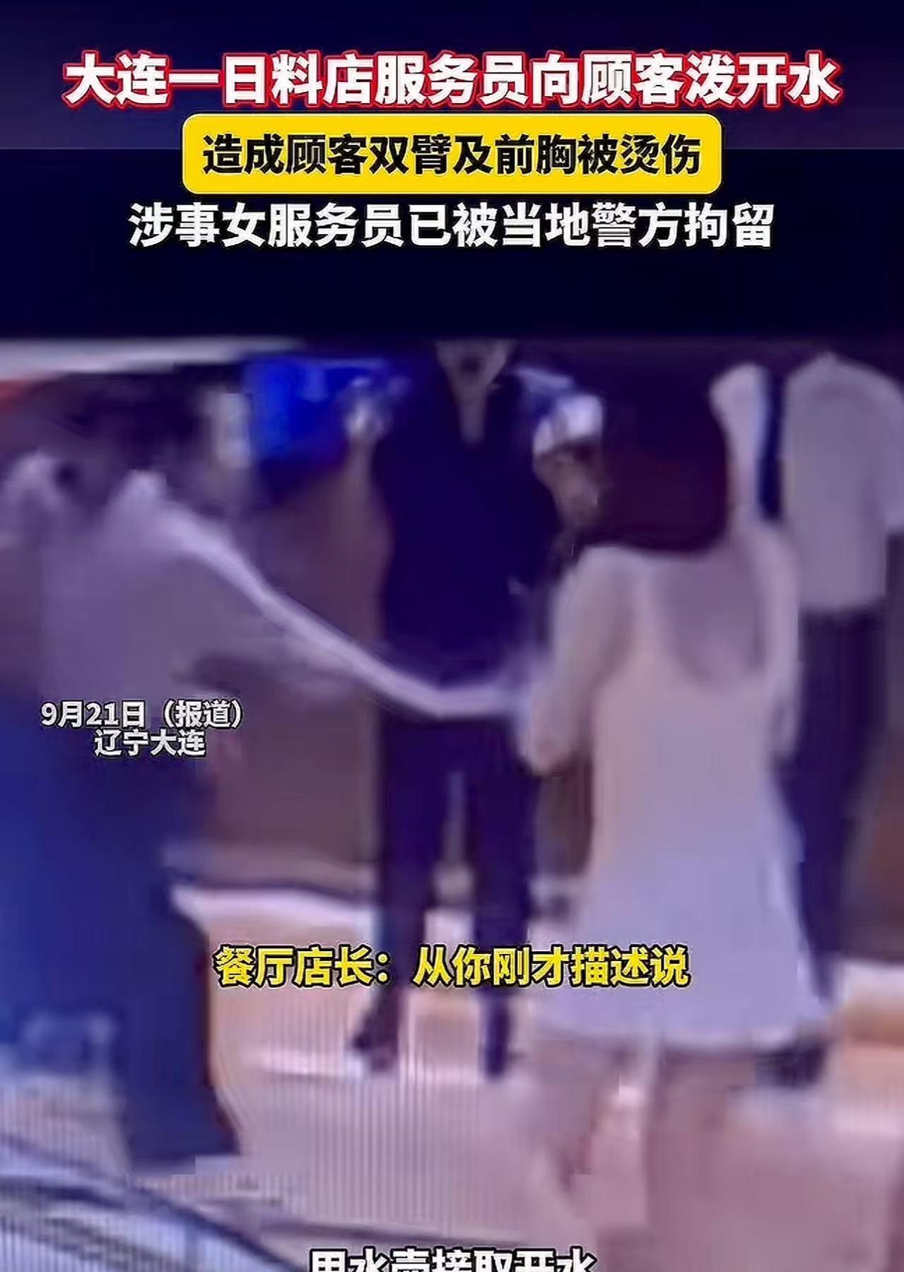 “这样的脾气当什么服务员?”大连,一家日料店内,服务员因为快下班了又来了一桌顾客,居然把开水泼在顾客身上!更气人的是,泼完开水后还起身对着镜头比耶!警方:已经行政拘留,罚款200元! (来源:法治继续时) 小沫和朋友们去大连旅游,玩到晚上9点多,肚子饿了的他们选择了一家当地颇有名气的日料店用餐。 当他们走进店里,原本期待着能享受一顿美味的日料盛宴,却没想到遭遇了一场噩梦般的经历。 原来,服务员眼看下班时间临近,心里正盘算着赶紧结束工作。突然又来了小沫他们这一波客人,脸上瞬间闪过一丝不耐烦。 用餐过程中,小沫想加点酱油,便招呼服务员给自己加,可服务员却没好气地冲她喊道:“酱油就在那边,你自己不能倒吗?” 那语气,就像吃了枪药一样,充满了火药味。小沫和朋友们听了,眉头瞬间皱了起来,心里很是气愤,忍不住斥责服务员态度实在太差。 就在双方气氛有些紧张的时候,意外突然发生了。服务员不知怎么的,突然端着开水壶一脸痛苦地蹲在地上。 小沫他们看到这一幕,心里有些犹豫,想着要不要上去帮忙。但善良的他们还是不忍心看着服务员难受,于是便上前询问服务员的情况。 可是,他们万万没想到,这竟然是一场精心策划的“报复”。 服务员突然猛地站起来,恶狠狠地将开水朝着小沫泼了过去。滚烫的开水瞬间淋在小沫的双臂以及前胸部位,小沫疼得哇哇大叫。 小沫的朋友们又惊又怒,其中一人迅速拿出手机,想要拍下这恶劣的一幕作为证据。 可服务员却丝毫没有意识到自己的错误,反而对着镜头比了个耶,还一脸挑衅的样子,那模样简直嚣张到了极点。 小沫强忍着剧痛,在朋友的帮助下报了警。警方很快赶到现场,经过调查取证,依法给予服务员行政拘留10日,并处罚款200元的处罚。 事后,店长出面解释,称可能是因为下班时间到了,小沫他们过来耽误了服务员下班,所以服务员才会情绪失控。 对于后续的赔偿问题,双方始终未能达成一致。小沫的丈夫看着妻子被烫伤的身体,心疼不已,他坚定地表示要走法律程序,为妻子讨回公道。 此事引发了热议,有网友说,这家日料店人均1500,服务员居然这么火大,这服务行业不能做就不做,为什么祸害别人! 也有网友说在餐馆差不多过了用餐时间的情况下,尽量不要去吃饭,你觉得是在给老板做生意,但厨师和服务员却觉得你害他们加班了,鬼知道他们会不会对你的菜里吐口水,反正你又看不出来!还有现在的人生活压力都很大,都憋着一口气儿等着释放呢,在外面还是多一事不如少一事。! 还有网友说,一个巴掌拍不响,不相信店员只是因为对方指使倒酱油就泼热水,肯定是事精。 那么,从法律上怎么看待这件事情呢? 即便泼开水是服务员的个人行为,餐厅也必须承担相应的责任。餐厅作为服务提供者,有义务确保顾客在用餐过程中的人身安全。 服务员在工作期间造成顾客受伤,餐厅难辞其咎。这就好比一个工厂,工人操作失误造成他人损害,工厂不能以“是工人个人行为”为由推脱责任。 在法律面前,任何试图逃避责任的行为都将受到严惩。餐厅若想真正挽回声誉,就该拿出诚意,积极承担责任,而不是找各种借口来推脱。否则,等待它的必将是法律的制裁和市场的淘汰!