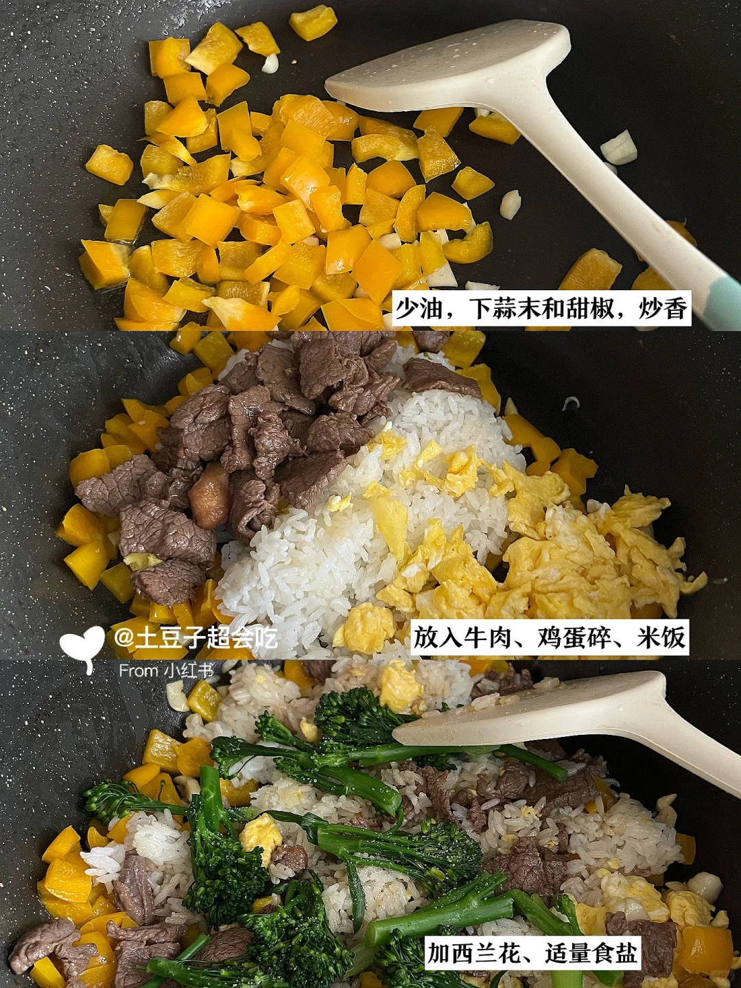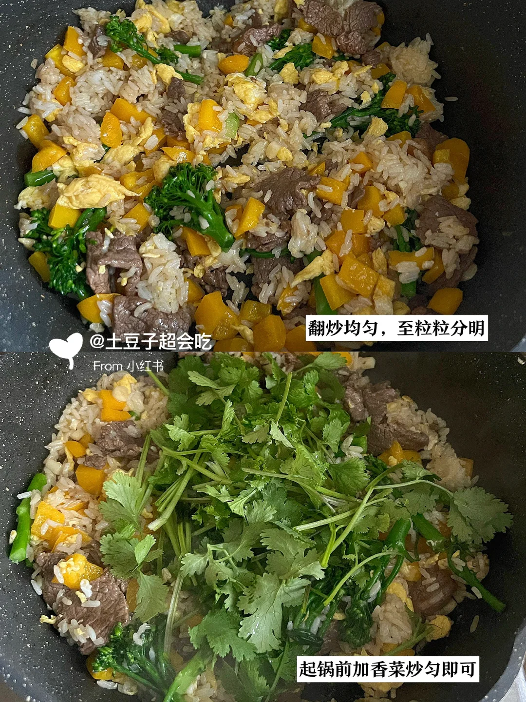 今天的饭是一个人的健康炒饭 我称之为甜椒香菜牛肉炒饭 甜椒、甜杆西兰花,搭配香菜牛肉真的很绝! 口感超丰富,营养又美味~ 减脂期的宝子也可以尝试哦 吃过一回,下次还想吃[哇R] . 🫑 食材:香菜、牛肉、甜椒、甜杆西兰花、大蒜 具体做法在P4-6哦~ 期待宝子们的成品图!