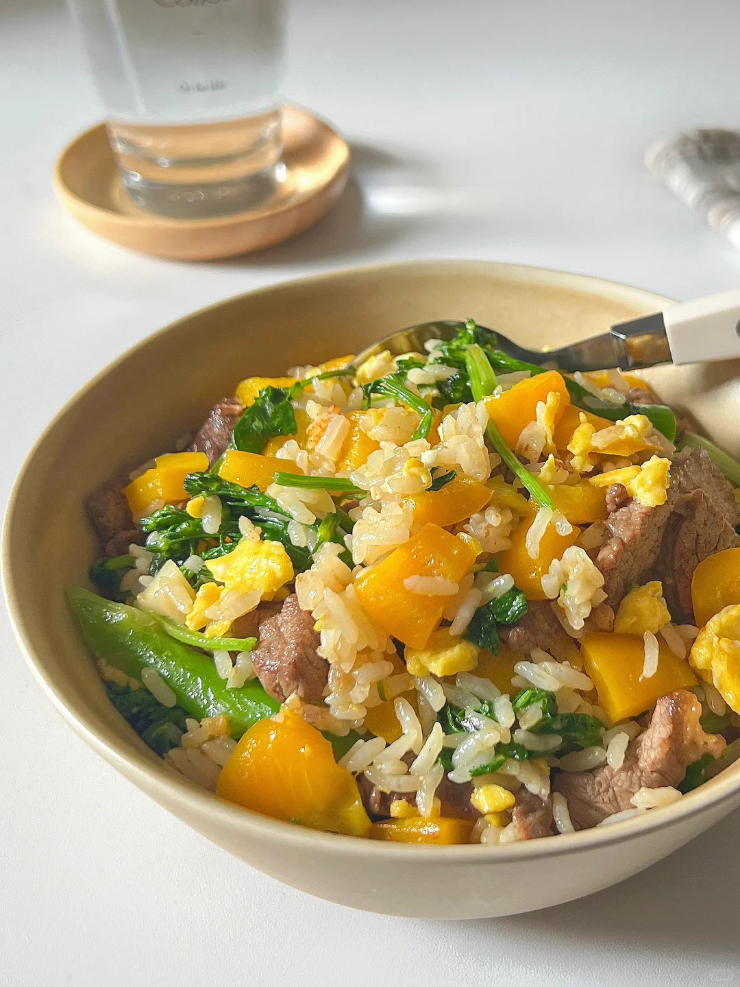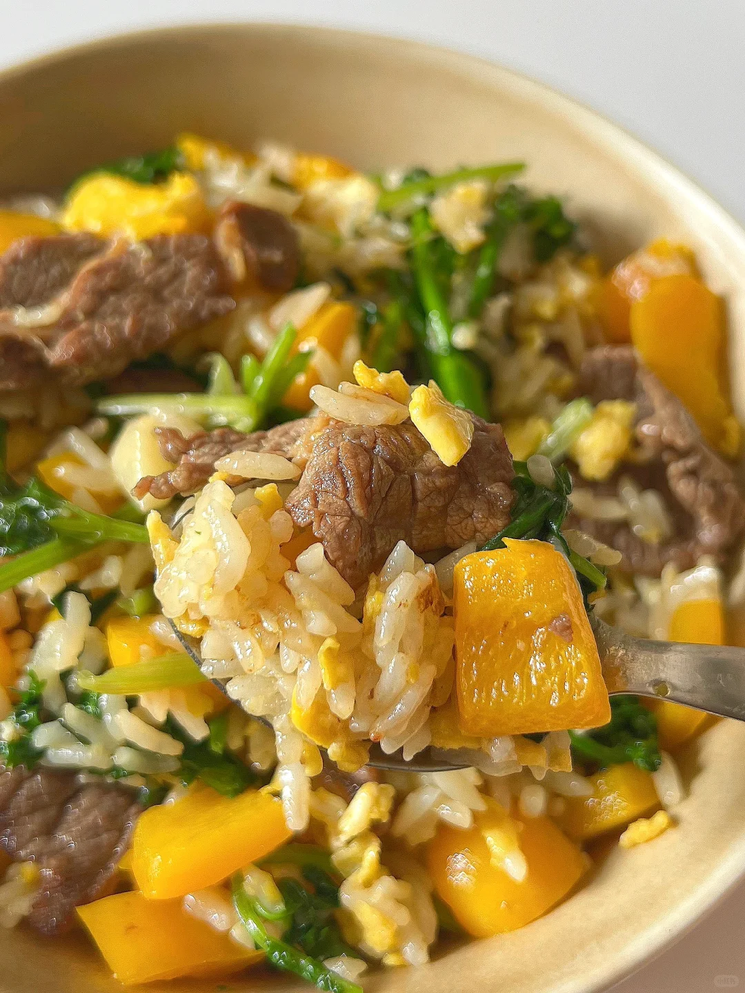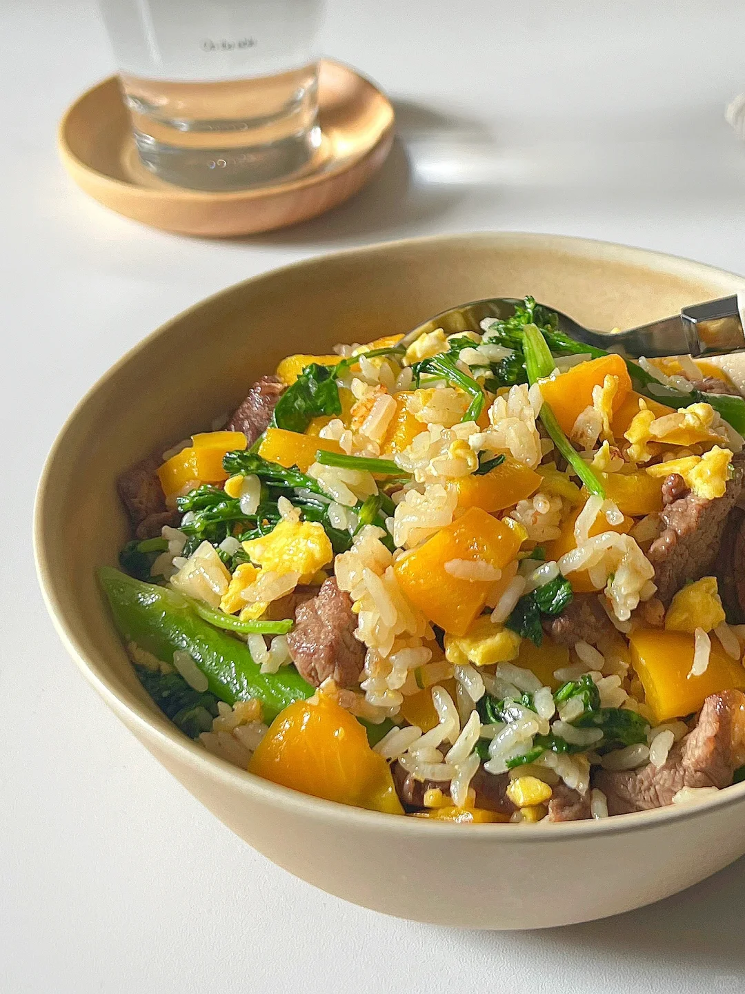 近期心头好🥬夏天超爱🧃菜心口蘑牛肉炒饭🍚