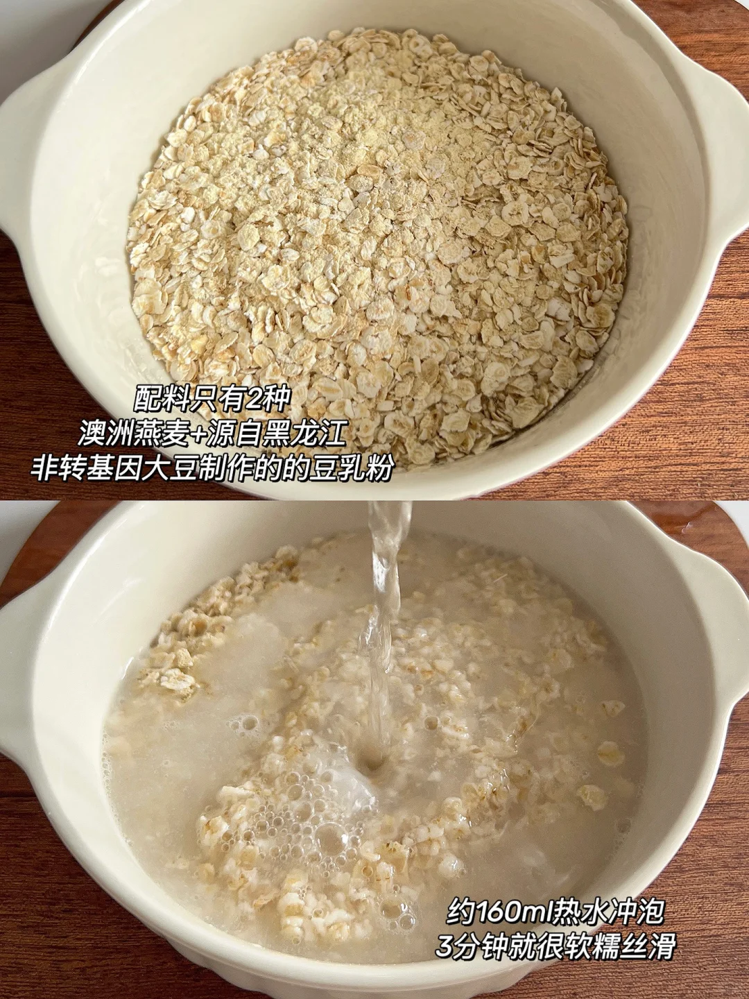 1⃣️ 拆一小包豆乳燕麦倒入碗中;