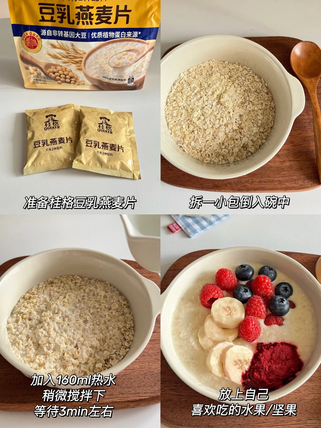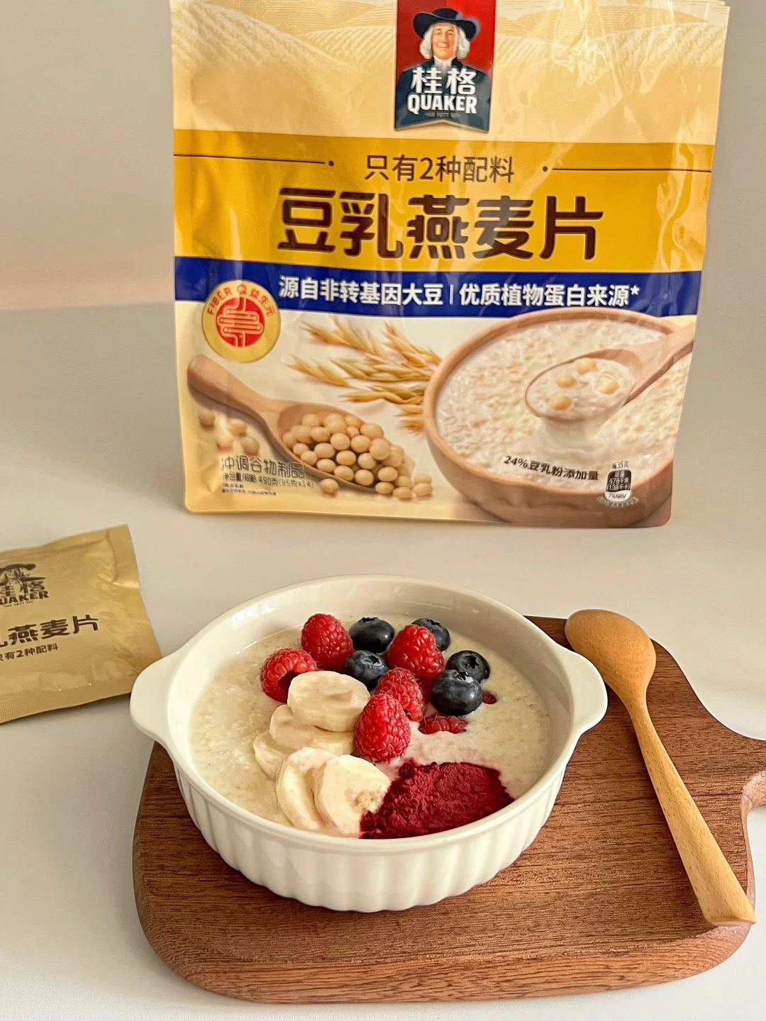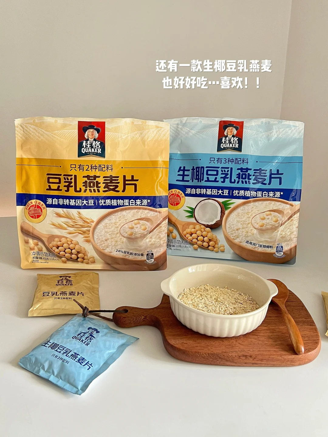 豆乳燕麦2合1的独立小包装忒方便了,平时直接用热水泡来吃就很不错!简简单单就是一碗丝滑软糯的豆乳燕麦🥣