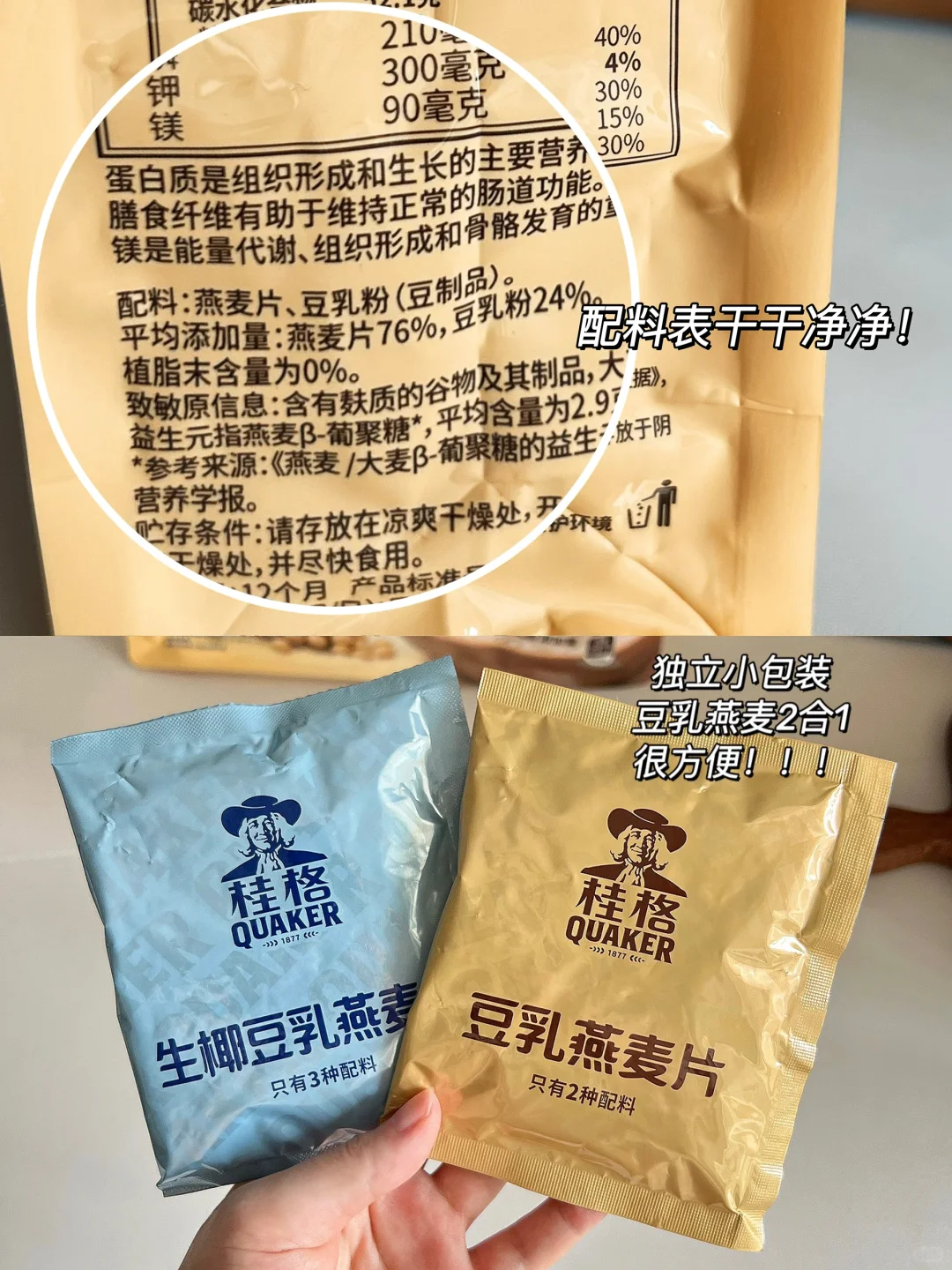 我日常用的是桂格家的豆乳燕麦,配料表hin干净👌🏻只有豆乳和燕麦[喝奶茶R]