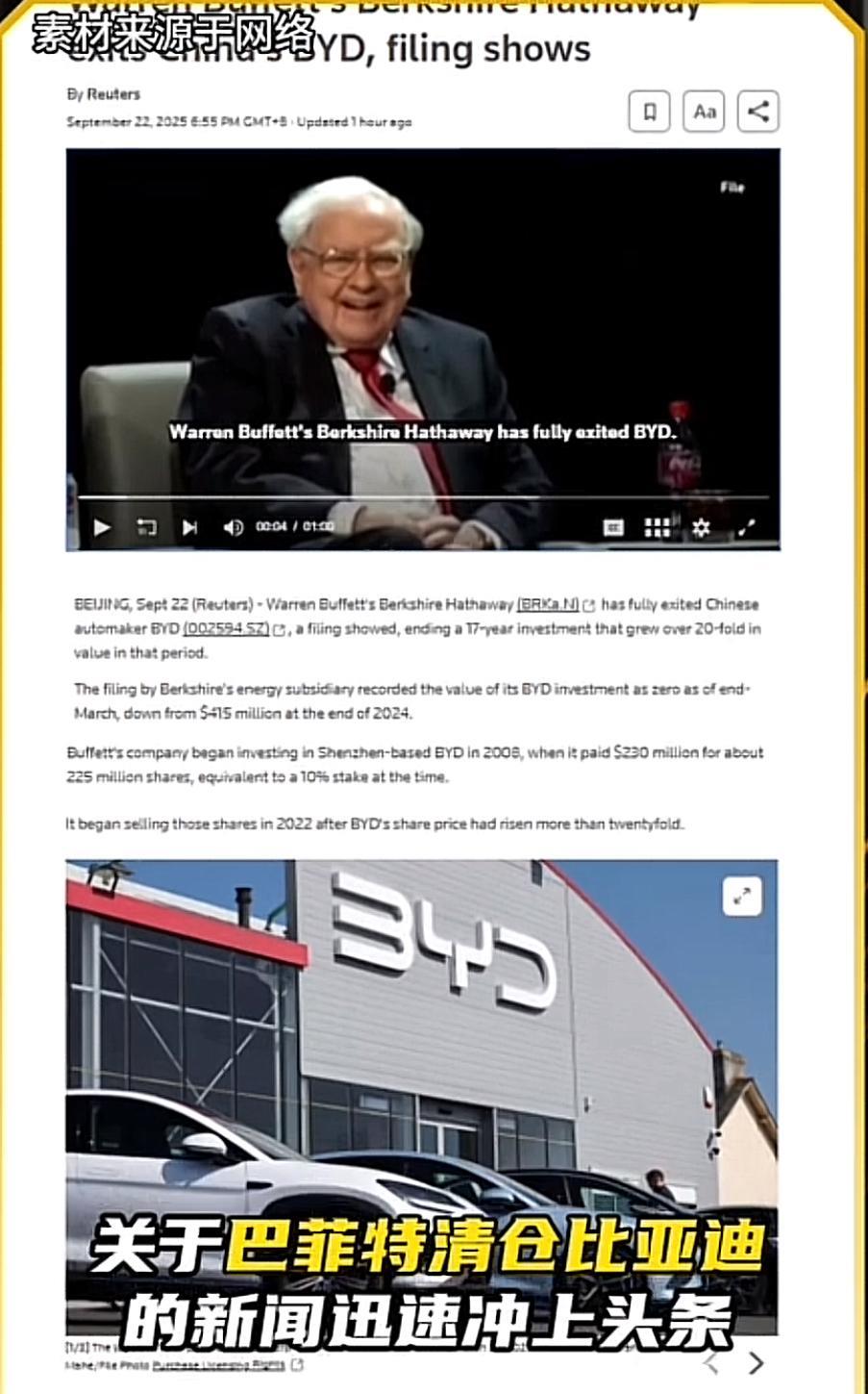 17年狂赚38倍后,巴菲特清仓比亚迪股票… 这是不看好比亚迪的未来,还是只是股神