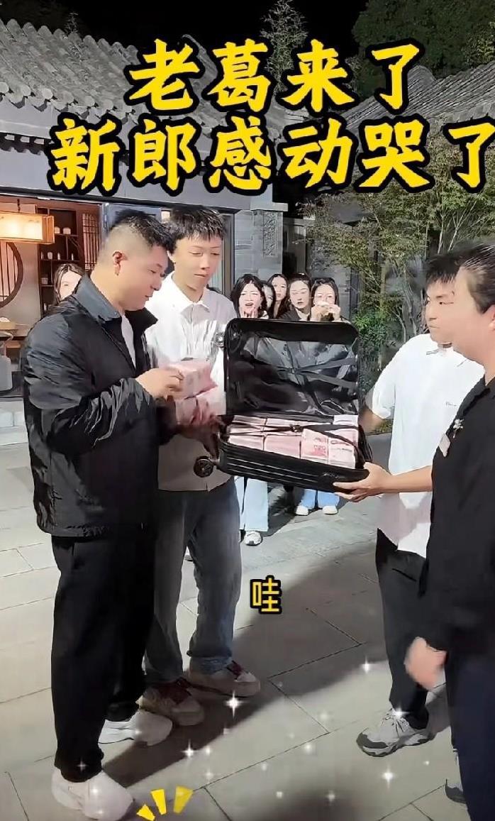 说到做到,老葛的相亲大舞台,迎来第一对相亲对象步入婚礼殿堂!这对新人从认识到结婚不到半个月就举办了婚礼,只因老葛一句话,他会亲自参加婚礼并担任证婚人,甚至不顾合伙人散打的反对,当场随礼100万现金,虽然看起来像练功钞,但论牌面出手阔绰,除了老葛,谁会有这种大手笔! 不仅如此,老葛还承担了全部酒席费用,原计划4000多的标准被合伙人月亮升级到8888元每桌,因为咱不能跟网红一个排面啊,老百姓结婚也就是一千多块钱一桌吧,我光酒席就要花一百万!整个互联网,谁有我大方? 而未婚妻看到这一幕即开心又羡慕,问老葛,咱俩的婚礼什么时候办啊?什么时候才给直播间的阿姨们一个交代啊,你和嫂子到底啥时候离啊。